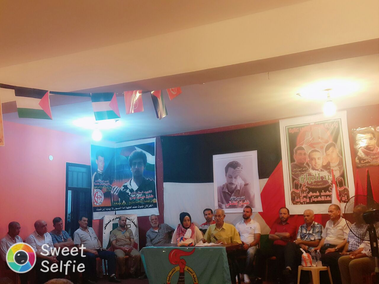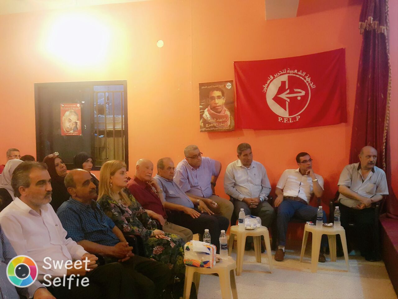 تحدث فيها عضو المجلس الوطني الفلسطيني المناضل صلاح صلاح، وذلك في قاعة مركز الشباب الفلسطيني في مخيم برج الشمالي، وبحضورقيادة الجبهة الشعبية لتحرير فلسطين في منطقة صور، ومسؤول لجنة العمل النقابي والجماهيري للجبهة في لبنان، وعدد من كوادر وأعضاء الجبهة، وحشد من ممثلي القوى والفصائل والأحزاب، والاتحادات واللجان الشعبية والمنظمات الشبابية، والجمعيات الأهلية، وفاعليات ثقافية وطنية لبنانية وفلسطينية.