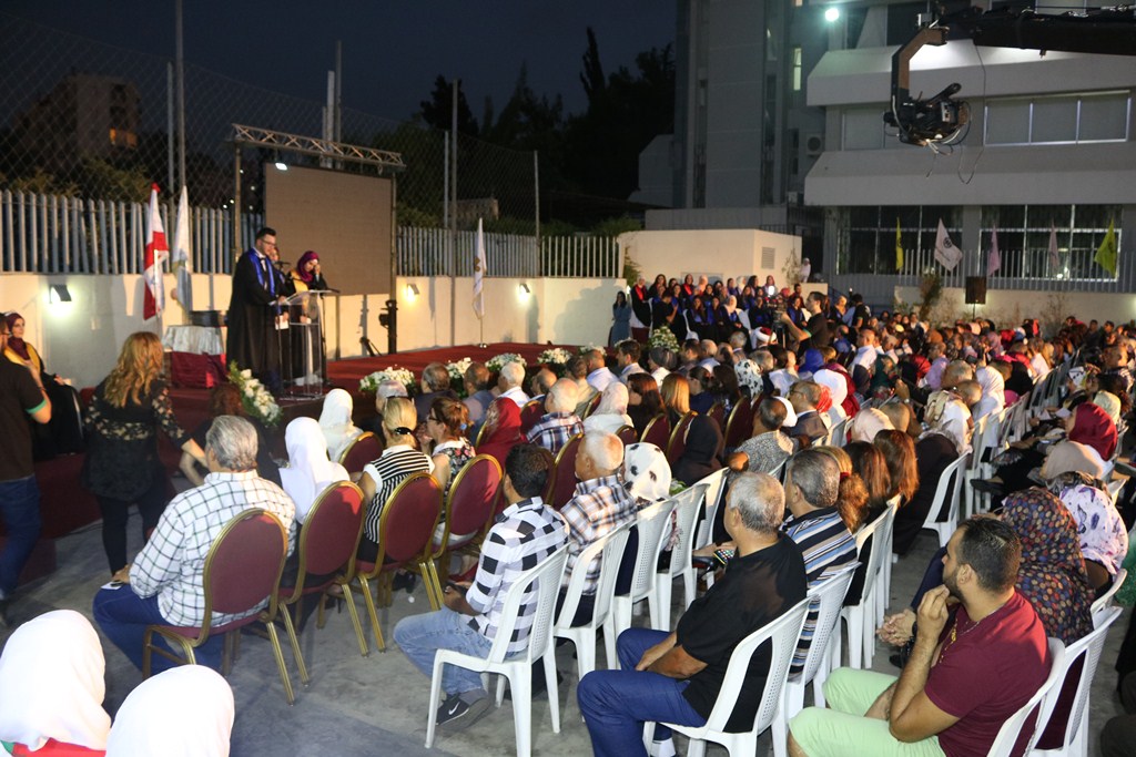 افتتح الحفل بالنشيد الوطني ونشيد الجمعية، وبعد دخول موكب الخريجين رحّب عريفا الحفل الأستاذ محمد ناصر الدين والأستاذة زينة الغزاوي بالحضور، ثم القى الطلاب ريم الغزال وميسم الجردلي ومحمد الرفاعي كلمة الخريجين.