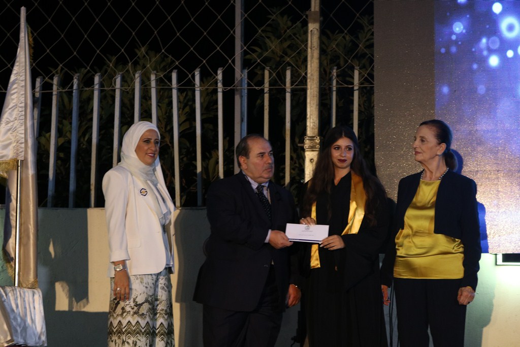 وفي الختام قامت رئيسة الجمعية والمديرة بتقديم الشهادات على الخريجين والخريجات، كذلك تقديم المنح المقدمة من جامعة LIU ومن السيدة رولا الشماع الأنصاري.