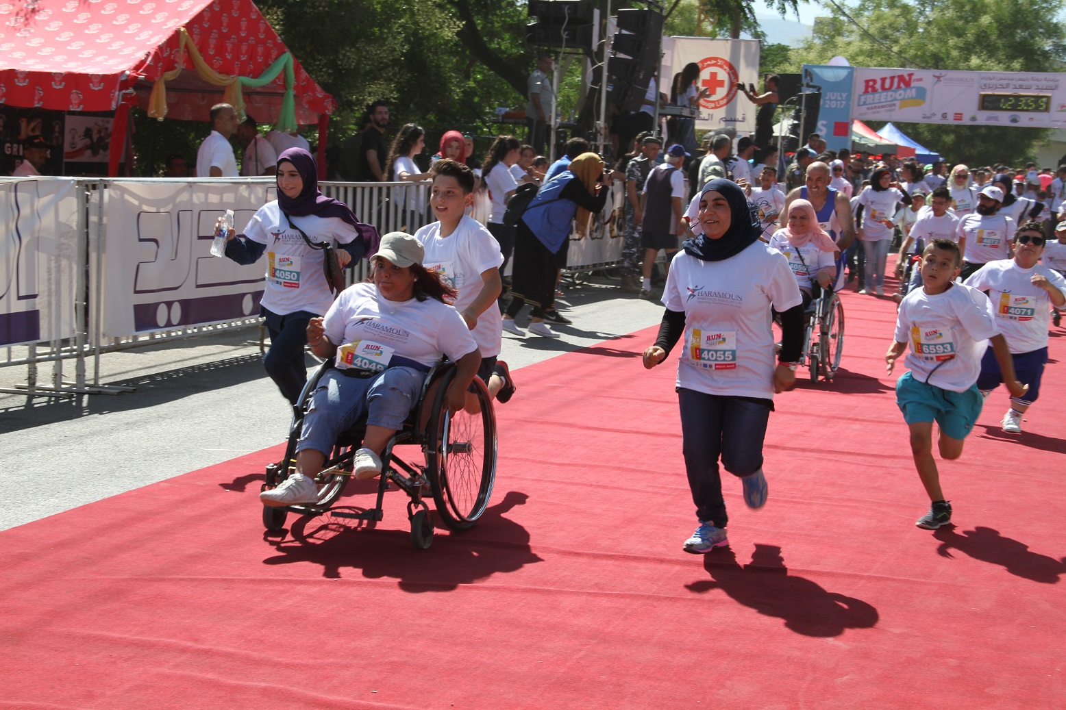 ليطلق بعدها ممثل الرئيس الحريري النائب وهبي اشارة الانطلاق للعدائين حسب الفئات العمرية من سباق 1 كلم الى 10 كلم اضافة لمشاركين على الدراجات الهوائية واصحاب الحالات الخاصة ( كراسي متحركة )