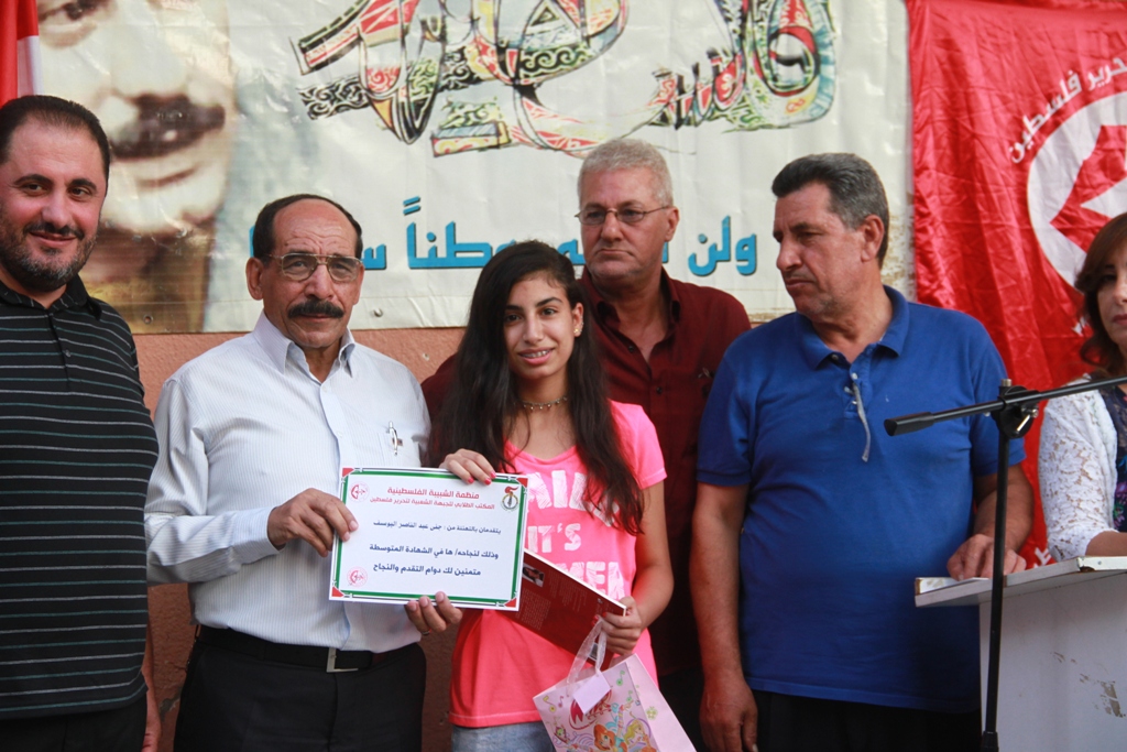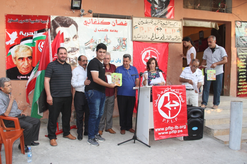 كرمت الجبهة الشعبية لتحرير فلسطين، ومنظمة الشبيبة الفلسطينية في منطقة صيدا عددًا من طلابها الناجحين بالشهادتين المتوسطة والثانوية، وذلك بحضور عضو اللجنة المركزية العامة هيثم عبده، ومسؤول العمل النقابي والجماهيري في لبنان أبو وسيم، ومسؤول العلاقات السياسية في منطقة صيدا أبو علي حمدان، و أعضاء قيادة المنطقة، وأهالي المكرمين، وعدد من الرفاق والرفيقات.