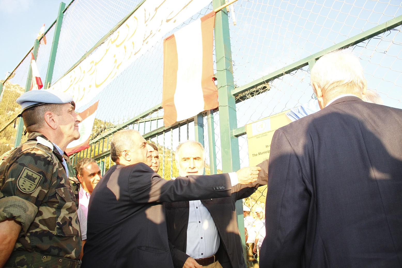 اضاف، “وتأتي مساعدات اليونيفيل لتضيء شمعة، ولتضع مدماكا ولتخفف عبئا ولتمكن عرى التواصل والتعاون بين الجيش اللبناني واليونيفيل والأهالي”، شاكرا كل من ساهم في انجاز “هذا الصرح الرياضي الذي سيمنح شبابنا واهلنا مكانا آمنا لنشاطاتهم بعيدا عن الألغام والقنابل العنقودية التلي قتلت وجرحت وشوهت العديد من أبنائنا الأبرياء”.