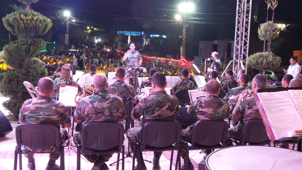 واختتم اليوم الاول، وضمن أجواء عيد الجيش اللبناني،وبحضور ممثل قائد الجيش العماد جوزيف عون ممثلا بالعقيد عمر مجلّد والنائبين علي فياض وقاسم هاشم ورئيس البلدية عباس دياب ونائبه عدنان رمال وفاعليات وحشد من الاهالي، قدمت فرقة الجيش اللبناني الموسيقية بقيادة الملازم طارق رحمة، معزوفات وطنية لبنانية حماسية، استهلتها باغنية " طلوا حبابنا طلوا"، هللي عالريح يا رايتنا العالية" و"تسلم يا عسكر لبنان" واختتمتها باغنية "راجع يتعمر لبنان"، نالت إعجاب وتصفيق الحضور، رافق الفرقة غناءً ربيع الياس ومحمد علاء الدين.