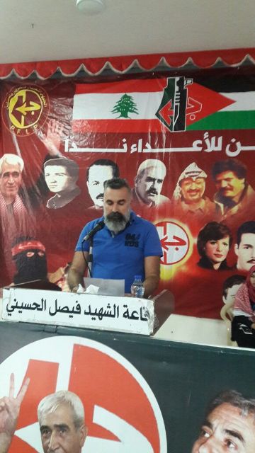 بعد سرد تاريخ الشهيد الأمين العام للجبهةالشعبية لتحرير فلسطين، دعا لوباني إلى موقف شجاع وموحد في وجه أصحاب الأجندات التي تسيء للشعب الفلسطيني وقضيته، معتبرًا أن ما يجري في مخيم عين الحلوة حلقة في مخطط تصفية قضية اللاجئين وحق العودة، وقد شدد على ضرورة التصدي الموحد لكل العابثين بأمن المخيم وكل المخيمات، معتبرًا أن التستر بعباءة التدين يخفي خلفه مؤامرة ينفذها بعض الموتورين ممن باعوا ضمائرهم وبعض المضللين والمخدوعين، كمادعا الحكومة اللبنانية وكافة المرجعيات السياسية والروحية للعمل على رفع الظلم الواقع على فلسطينيي لبنان الذين يعانون مرارة اللجوء وشظف العيش، جراء الظروف الاجتماعية والاقتصادية والقوانين الجائرة التي تحرمهم من أبسط حقوقهم الإنسانية، محذرًا من الحملات المشبوهة التي تنادي وتدعو للهجرة الجماعية، باعتبارها تصب في خدمة المشروع الصهيوني، مشددًا ضرورة تحل القيادة الفلسطينية مسؤولياتها كاملة بما من شأنه التخفيف من معاناة الشعب الفلسطيني، وتعزيز مقومات صموده في مواجهة المخططات الصهيونية وإفشالها.