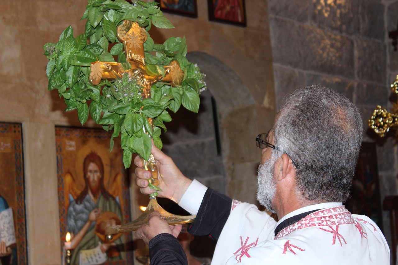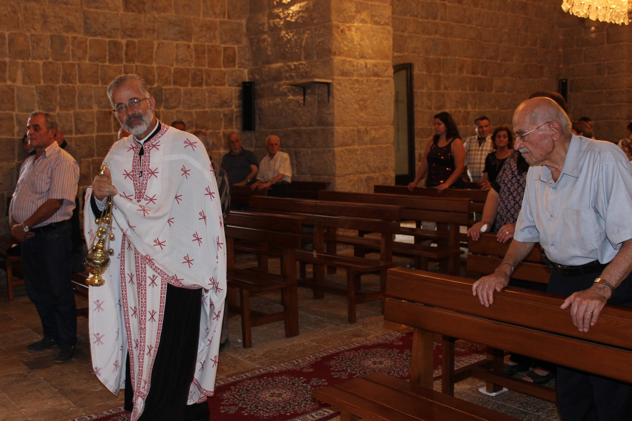 وفي ختام القداس بارك الاب فخري مراد الماء والزهور كتقليد في عيد ارتفاع الصليب للتبارك منها.