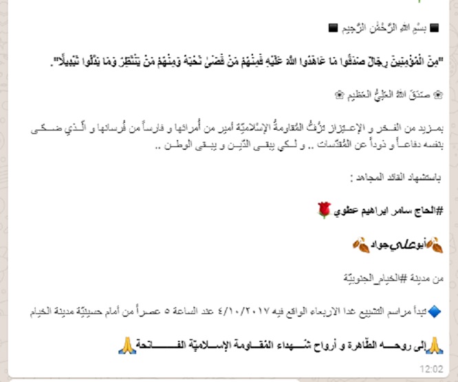 سجل التعازي بالشهيد القائد الحاج سامر ابراهيم عطوي (أبوعلي جواد)