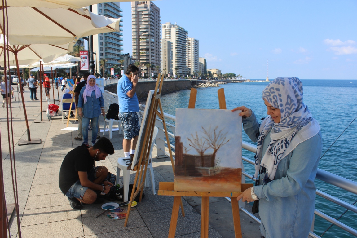 نظّم ملتقى الألوان الفني يوم أمس الأحد نشاطا فنيا بعنوان «بحر وناس» على كورنيش عين المريسة بيروت، وبدأ الفنانون عند العاشرة صباحا بالرسم المباشر حيث توزعوا على خيم جهزت خصيصا للنشاط ،وبالإضافة للفنانين شارك الأطفال بحلقات رسم وتلوين على القماش والبحص .