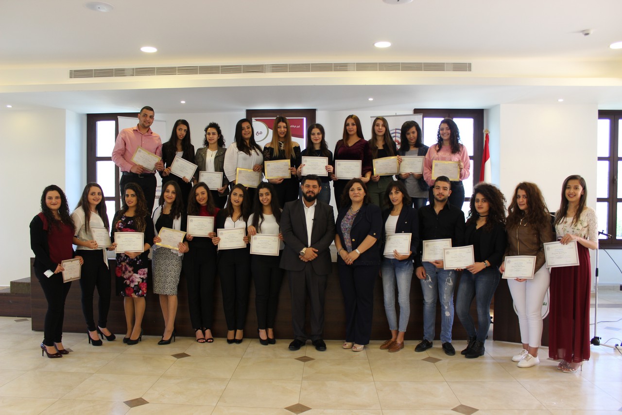 وبعدها تم الاستماع الى شهادات شباب مشاركين في الدورة واختتم الحفل بتوزيع شهادات على المشاركين في الدورة .