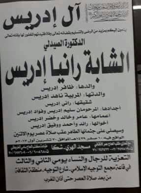 بصمت، رحلت بعدما ذهبت للنوم لكنها لم تستيقظ بل أكملت المشوار الى المقلب الآخر من الحياة، هي الصيدلانية الشابة رانية ظافر إدريس ابنة بلدة الهري الساحلية في قضاء البترون، تلك البلدة التي استفاقت أمس الاول على وقع خبر مؤلم، وهو وفاة ابنة البلدة بشكل مفاجئ.