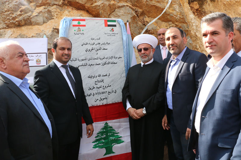 بعدها توجه الشامسي والجميع الى الطريق الرئيس الذي يربط الهبارية بشبعا حيث كان في استقباله نائب رئيس البلدية وحشد، قام خلالها بازاحة الستار عن اللوحة التذكارية لمشروع تعبيد الطريق الممول من مؤسسة خليفة بن زايد آل نهيان، وبرعاية رئيس مجلس الوزراء سعد الحريري، ثم شكر مرهج نجم باسم البلدية والأهالي الإمارات حكومة وشعبا على المشروع الحيوي والمهم لمنطقة العرقوب.