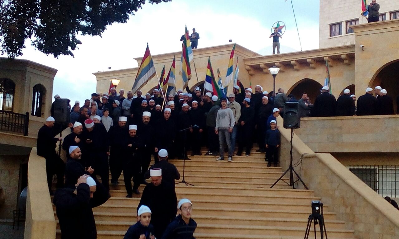 تعقيباً على الهجوم البربري للجماعات المسلحة على قرية حضر ومحيطها فجر اليوم أقيم في مقام السيد الامير التنوخي في عبيه لقاء لمشايخ الطائفة الدرزية ، تلى في نهايته سماحة شيخ العقل الشيخ نعيم حسن بيان دعم واستنكار لمن يحدث في المقلب الاخر لجبل الشيخ وهذا نصه: