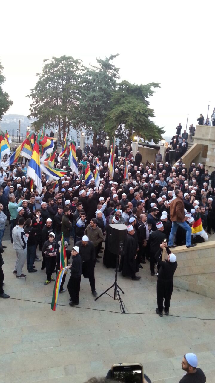 من هنا من مقام السيد الامير التنوخي نوجه نداءَ التضامن، الى اهلنا في حضر، الصابرين الصامدين والى كل جبل العرب والقنيطرة والجولان الابي وجبل السماق. نحن معكم في السراء والضراء، معكم في مواجهة المحن ومخططات الفتنة، وانتم في منطقة دقيقة من الصراع العربي الاسرائيلي، حذار ثم حذار من كل المحاولات المشبوهة لاغراقكم في بحر الاقتتال، انتم اصحاب الارض والهوية العربية الاسلامية، هكذا ستبقون ونبقى معكم.