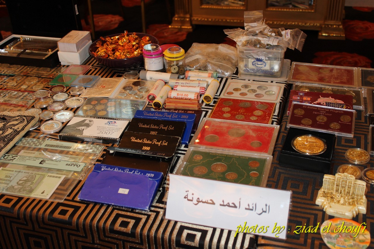 وضم المعرض الفريد من نوعه في لبنان النقود من العصور العباسية والأموية والسلجوقية والبيزنطية. ومسكوكات اسلامية وعالمية نادرة وطوابع عالمية صدرت تكريماُ لمناسبات مميزة في التاريخ او تكريماً لعظماء . ويعرض فيه الهواة والتجار المتخصصون مجموعاتهم لإتاحة المجال أمام الجميع وللجمهور تبادل الخبرات والمعارف والمسكوكات النادرة.