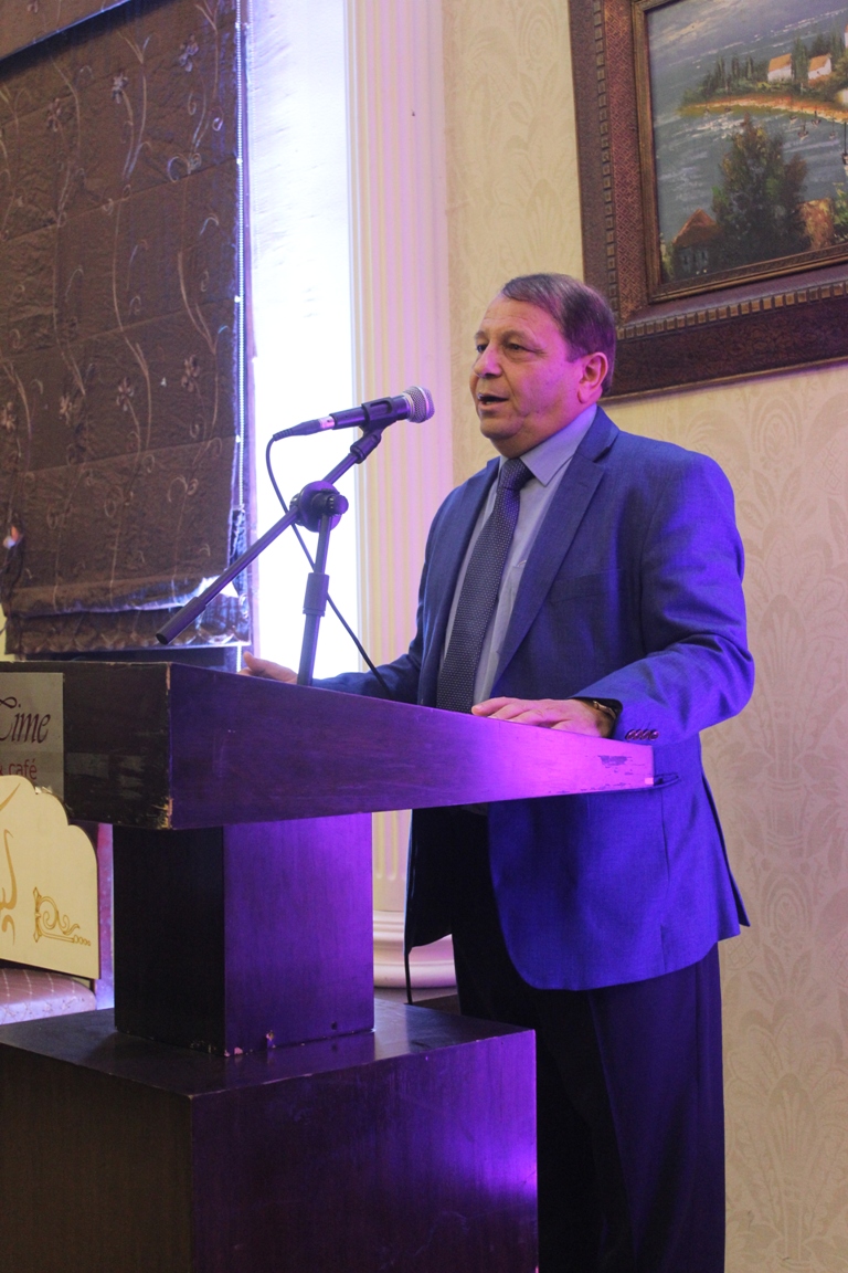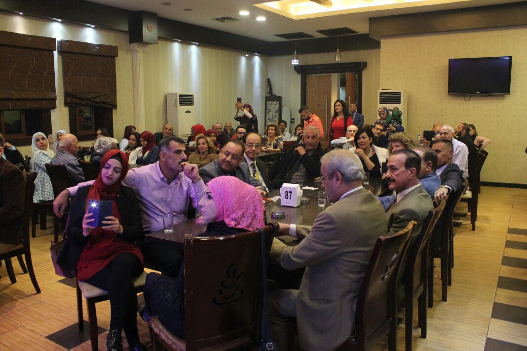 الضيفان العراقيان الأستاذان الجامعيان د. خالد سهر ود. سمير الخليل عضوا وفد منتدى النقاد الأكاديميين الذي يزور منتدى ليل وحكي قلّدا الشاعرين زرّ منتدى ليل وحكي وسط تصفيق الحاضرين .