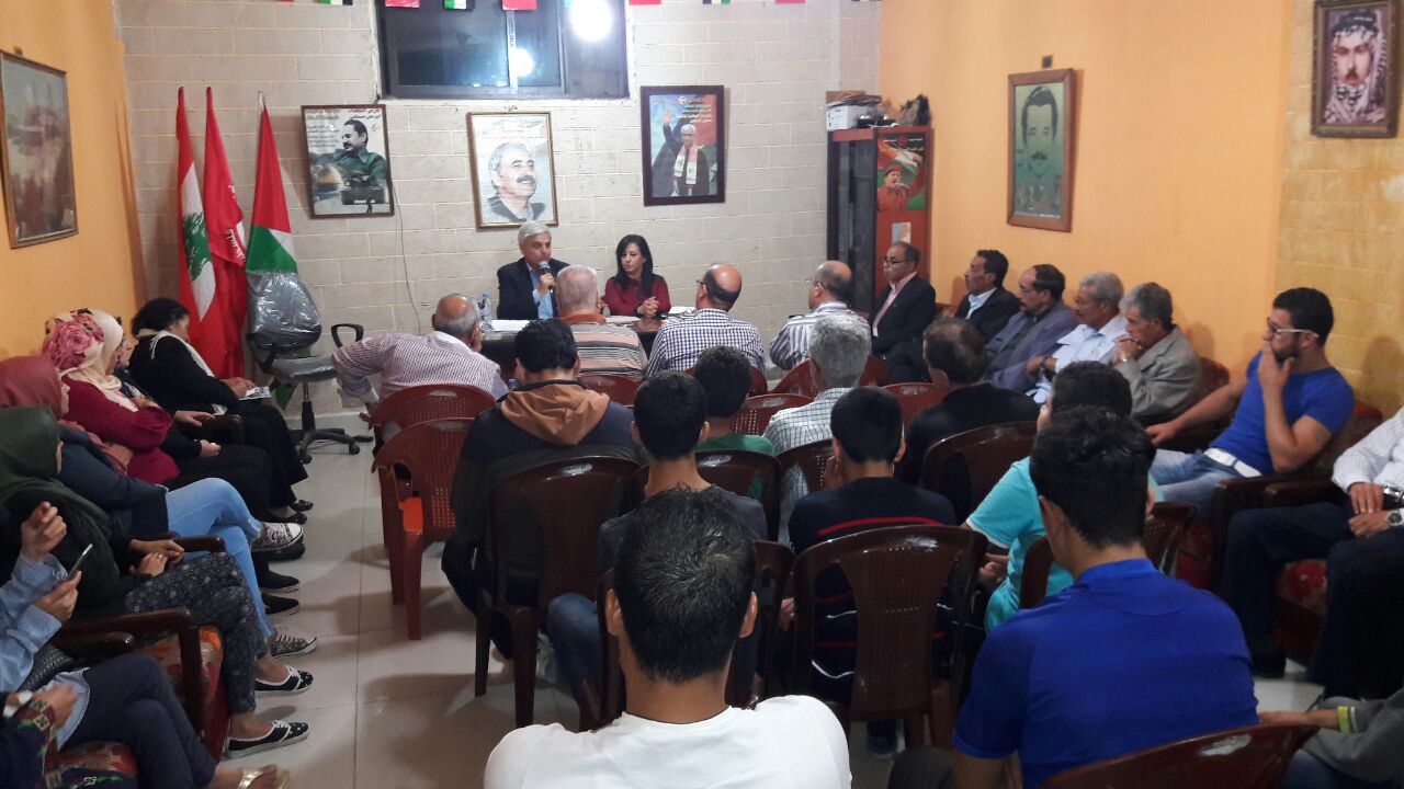 لمناسبة مئوية وعد بلفور، أقامت الجبهة الشعبية لتحرير فلسطين، منطقة صيدا، ندوة سياسية تحت عنوان: بلفور.. مؤامرة القرن، ما العمل؟ في مكتب الشهيد سعيد الصالح " أبو صالح "، في مخيم عين الحلوة، قدمها عضو حملة مقاطعة داعمي إسرائيل في لبنان، وأمين سر الحملة العالمية لحق العودة إلى فلسطين الدكتور عبد الملك سكرية، حضرها قيادة و كوادر و أعضاء الجبهة وأصدقاؤها في منطقة صيدا.