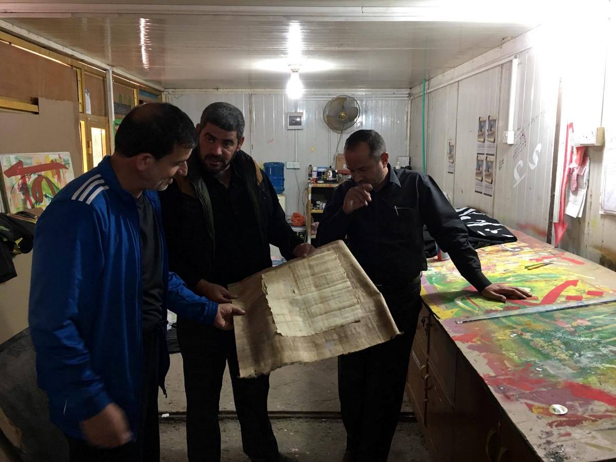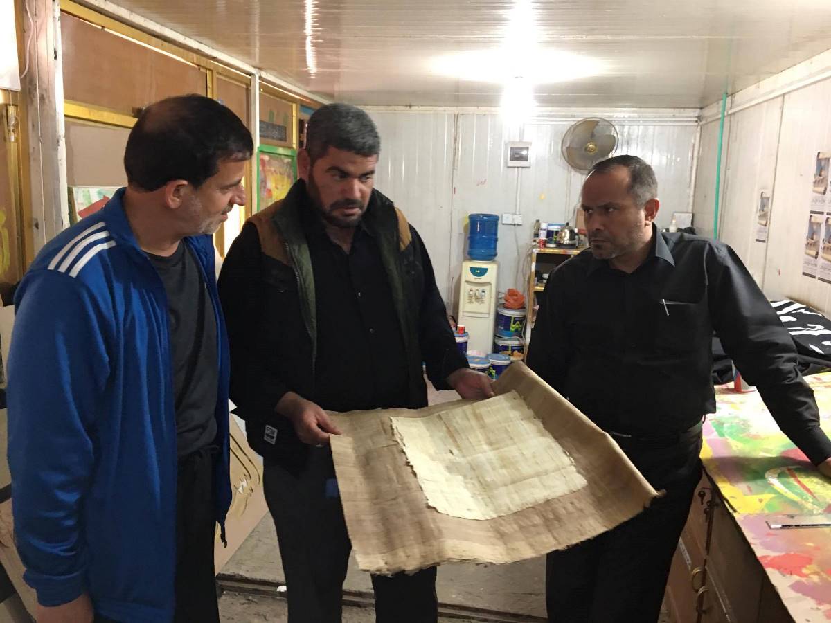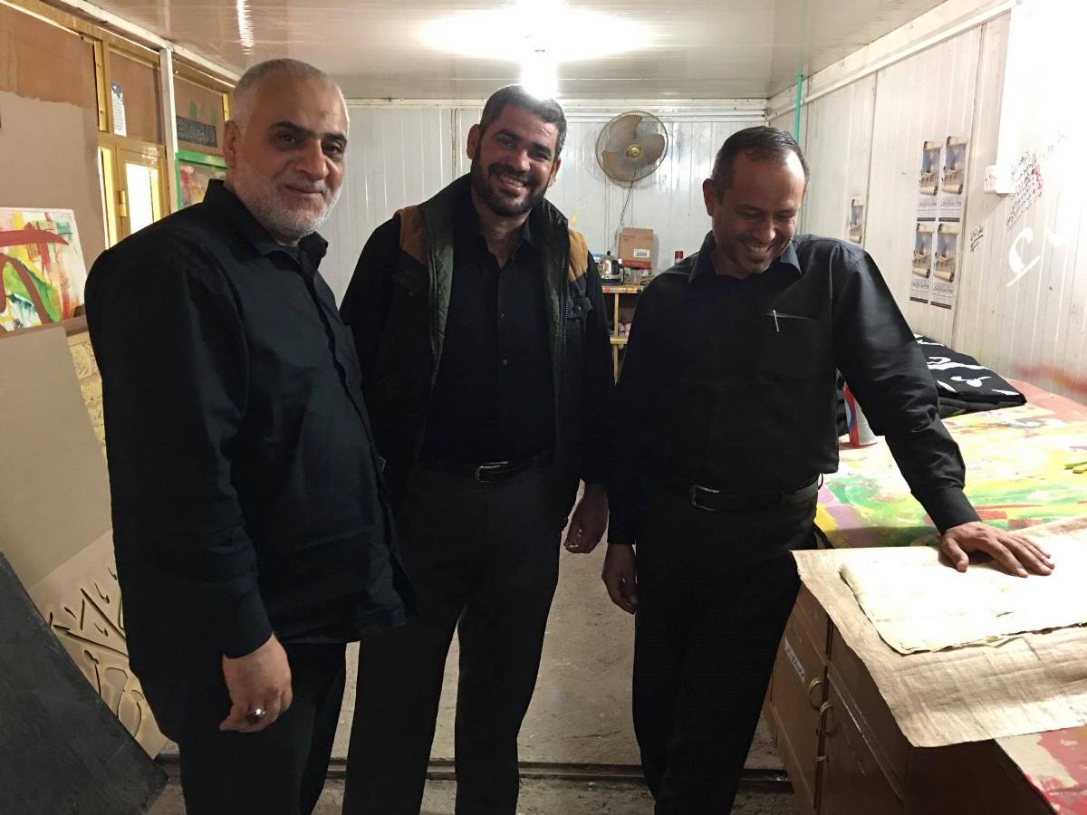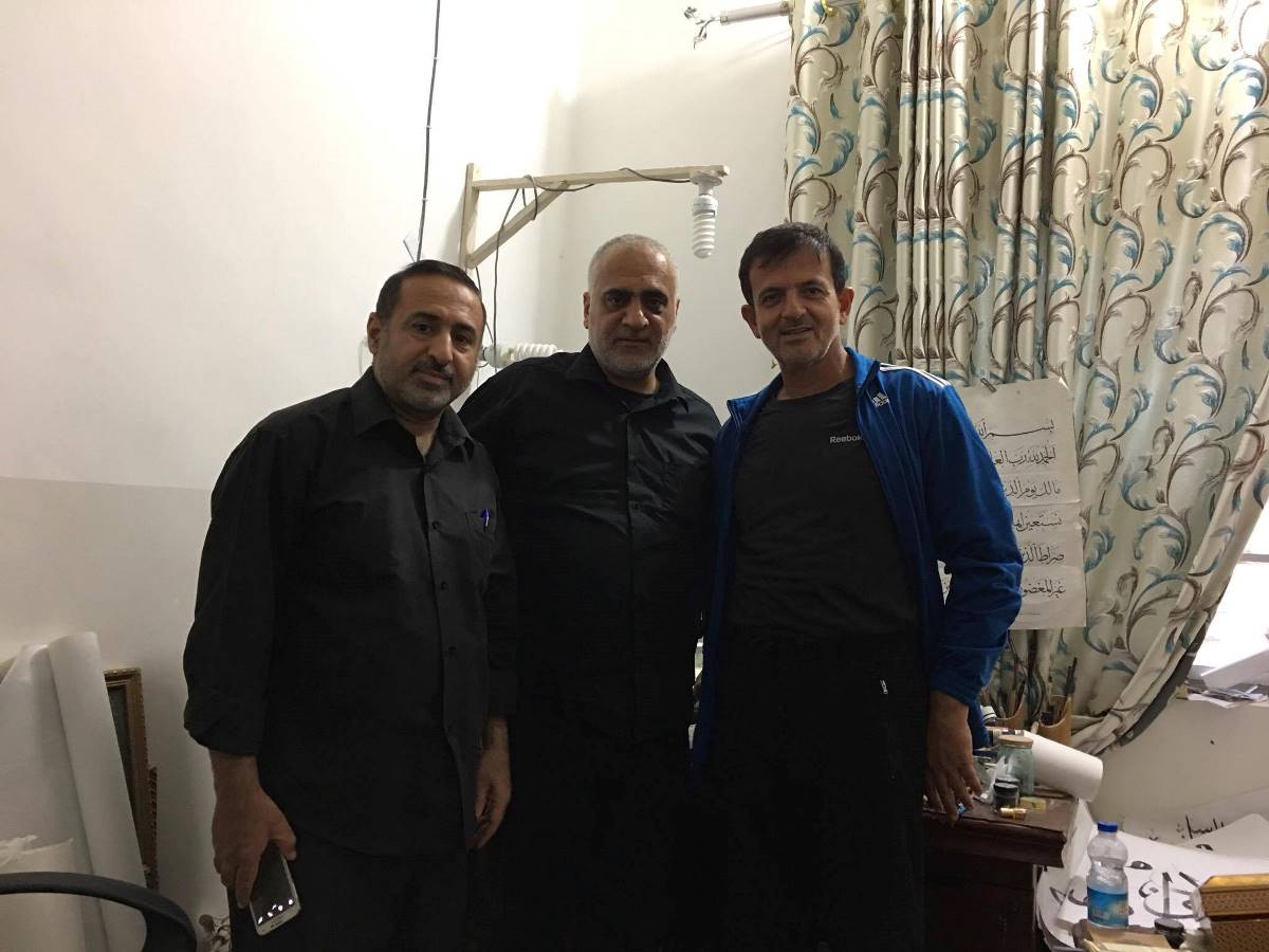 وانتقل الوفد الى مدينة النجف الأرشف والتقيا عباس وشحادي الخطاط عدنان القزاز واطلعا منه على اخر نشاطاته في الخط والزخرفة وكانت الأجواء اخوية ومميزة توجت بالاتفاق على التواصل من اجل اطلاق مشاريع مشتركة في الخط العربي .