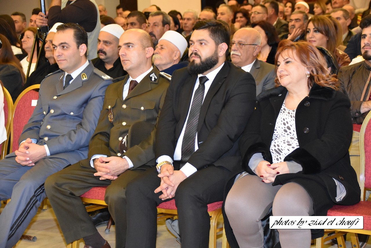 حضره كل من:دولة رئيس مجلس النواب الاستاذ نبيه بري ممثلاً بالنائب انور محمد الخليل، دولة رئيس مجلس الوزراء الاستاذ سعد الدين الحريري ممثلاً بالنائب الدكتور امين وهبة ، النائب وائل أبو فاعور ممثلا الاستاذ شفيق علوان، وزير الدفاع الوطني الاستاذ يعقوب الصراف وسيادة قائد الجيش اللبناني العماد جوزيف عون مثلان بالعميد الركن عبد المنعم ضاهر، وزير الخارجية والمغتربين الاستاذ جبران باسيل ممثلا بالسيد غسان نهرا، النائب الاستاذ اسعد حردان ممثلا بالأستاذ النور أبو سعيد، الوزير نقولا تويني ممثلا بالأستاذ نخلي رشو ، سعادة النائب الشيخ سامي جميل ممثلاً بالاستاذ ريشارد نادر، سيادة المطران الياس كفوري ممثلاً بالاب اميل حداد، السيدة وفى فصيل بك الداوود، مدير عام قوى الامن الداخلي اللواء عماد عثمان ممثلاً بالرائد الشيخ محمد زاكي،مدير عام الامن العام اللواء عباس ابراهيم ممثلا بالرائد رواد سليقا، مدير عام امن الدولة اللواء طوني صليبا ممثلا بالملازم الاول مروان موسى،ممثل قائد القوات الطوارىء الدولية ، الشيخ فريد الخليل ممثلاً بالاستاذ رمزي ابو اسماعيل ، العميد جان داوود وسائر اعضاء فرقة كورال الجامعة اللبنانية بقيادة المايسترو الدكتورة لور عبس و الاستاذ خالد العبدالله، عمداء و مدراء و اساتذة الجامعة اللبنانية، رؤساء اتحاد البلديات و رؤساء البلديت و المخاتير و اعضاء المجالس البلدية و الاختيارية، القوى العسكرية و الامنية ، ممثلي الاحزاب الوطنية و القوى السياسية ، الهيئات التربوية و الاعلامية و النقابية و الاجتماعية و الثقافية .
