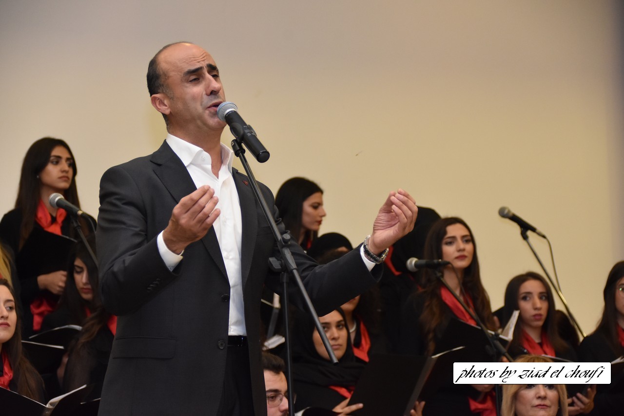 شعبٌ مقاوم وجيشٌ باسلٌ وطني، شكلا معاً إرادة واحدة، فقررا وواجها معا مجموعات إرهابية، حاولت تقويض أمننا وسيادتنا، ولامست بمشروعها السياسي حدّ تهديد الكيان، فكانت المواجهات التي حسمها جيشنا الوطني بعملية "فجر الجرود" في العام 2017، فحصّنا الوطن بسياج عالٍ من التضحيات والشهداء، فكل التحية لشهداء وجرحى الجيش وسائر المؤسسات الأمنية، ولهم منّا كل الوفاء.ما يزيد إحتفالنا هذا العام فرحا وفخرا، أننا نحييه مع فرقة كورال في جامعتنا الوطنية، الجامعة اللبنانية.والعلاقة بين الإستقلال والجامعة اللبنانية كإطار وطني جامع، يحتضن في كلياته شبابنا وشاباتنا، علاقة موضوعية.