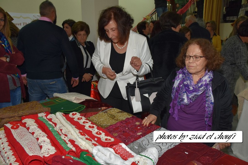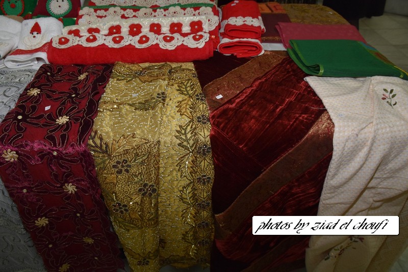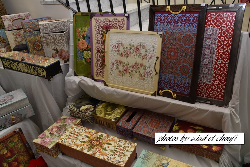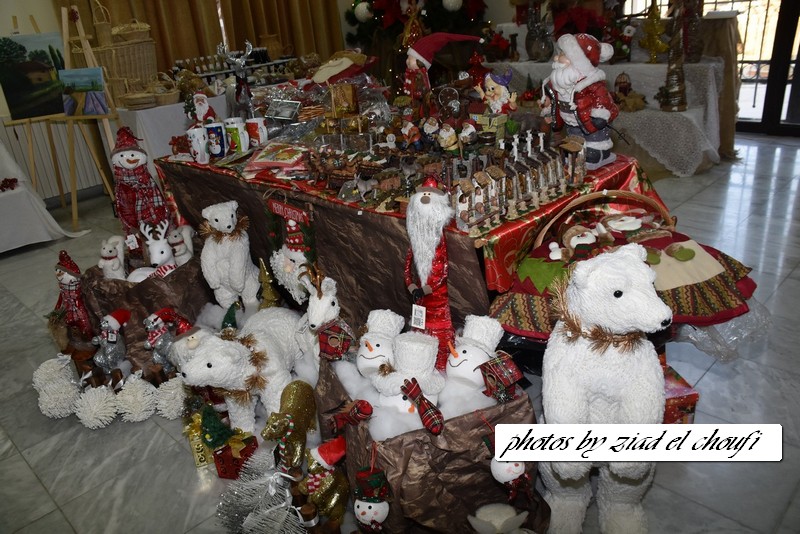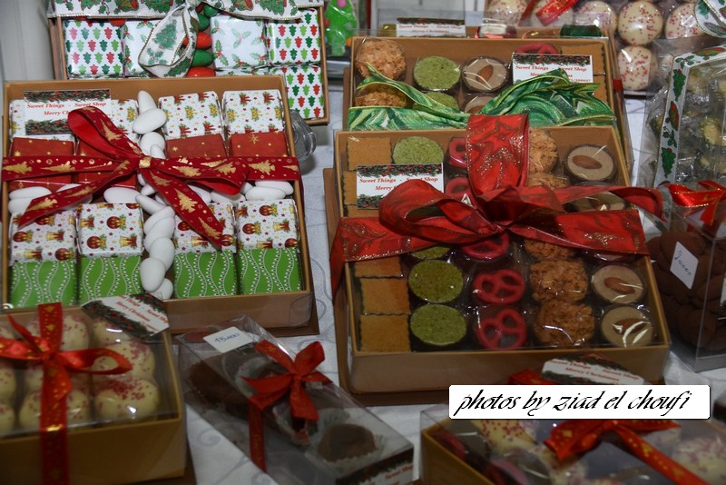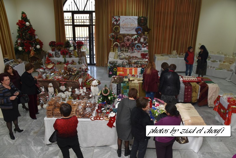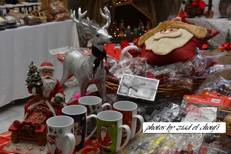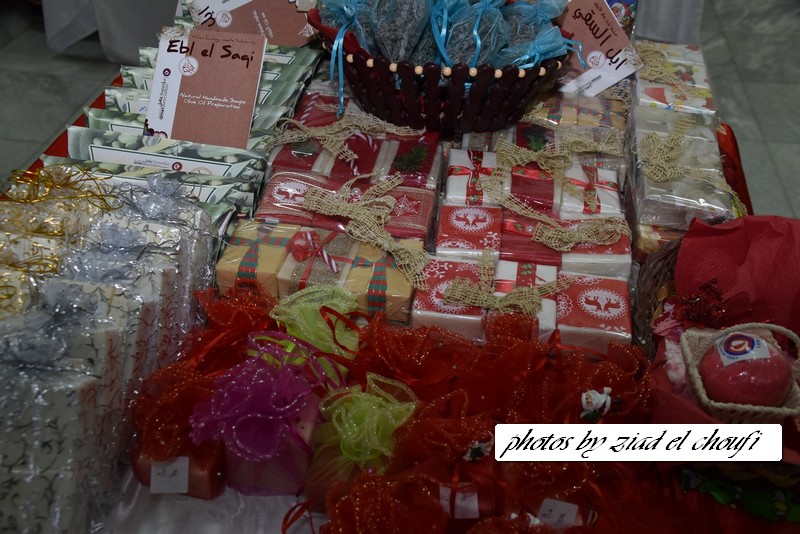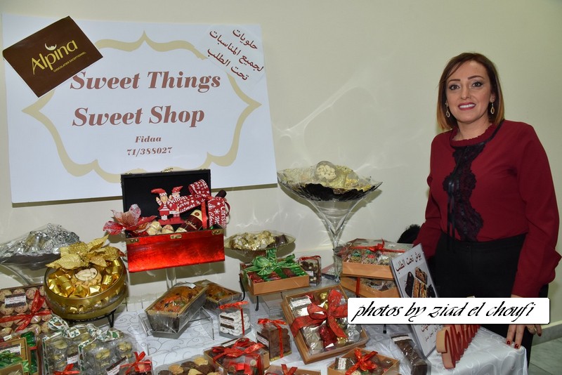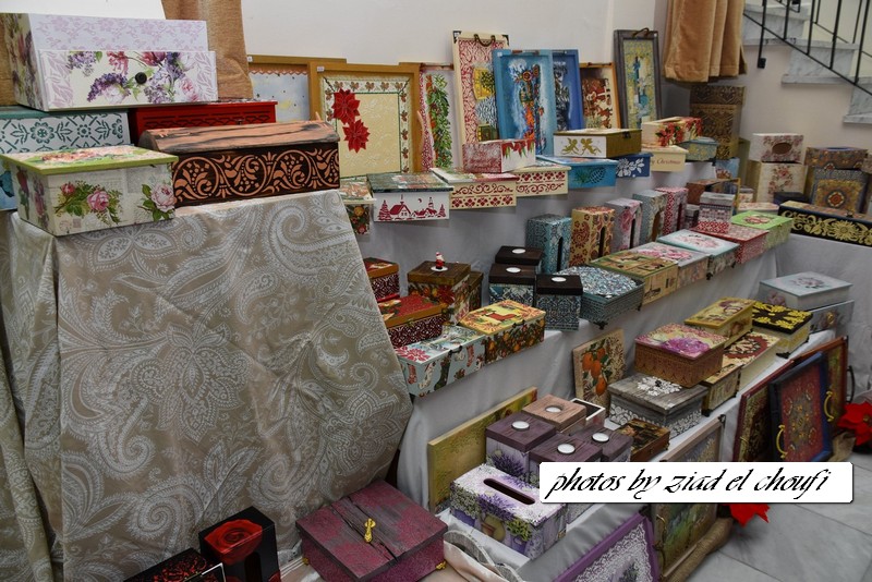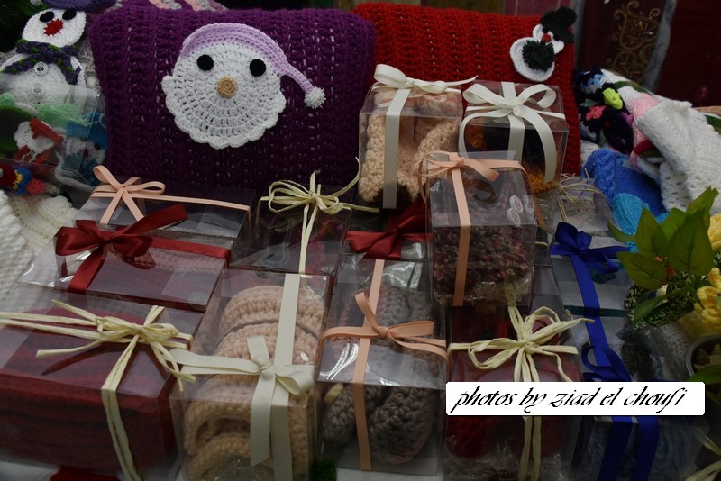 ويحوي المعرض منتجات منزلية واشغال يدوية من الكروشية والشموع ومستلزمات الميلاد والرسم على الزجاج بالاضافة الى كعكة العيد والشوكولا .