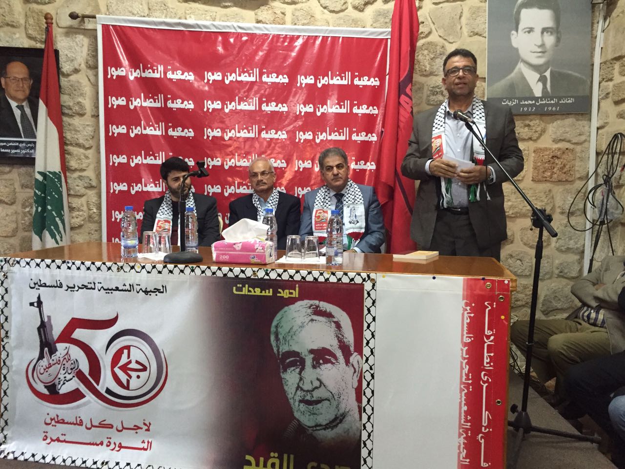 بأجواء مفعمة بصدق الانتماء لثقافة مقاومة تأبى الانكسار والاستسلام، ووسط حشد سياسي وثقافي واجتماعي، ولمناسبة اليوم العالمي للتضامن مع الشعب الفلسطيني، والذكرى الخمسين لانطلاقة الجبهة الشعبية لتحرير فلسطين، وبدعوة من الجبهة الشعبية، وجمعية التضامن الثقافية أطلق من مدينة صور كتاب " صدى القيد " للأمين العام للجبهة الشعبية لتحرير فلسطين المناضل القائد الأسير أحمد سعدات ، في قاعة نادي التضامن – صور.