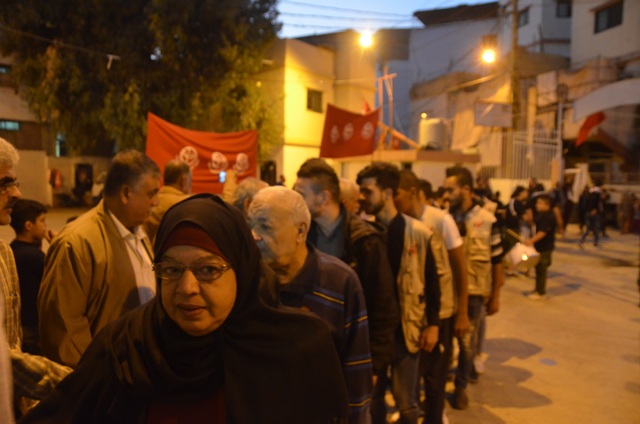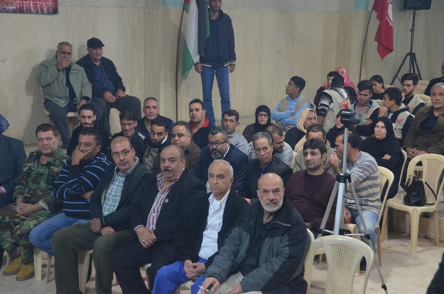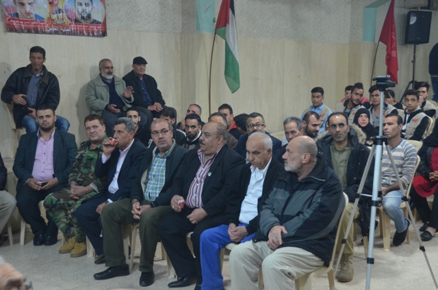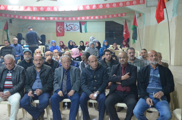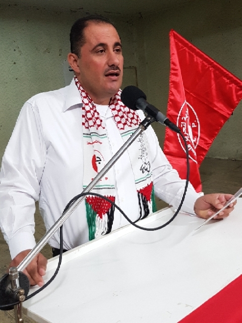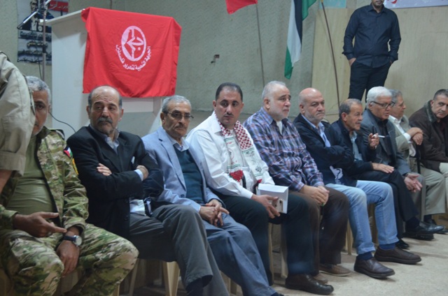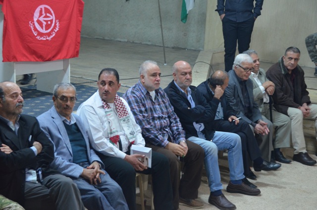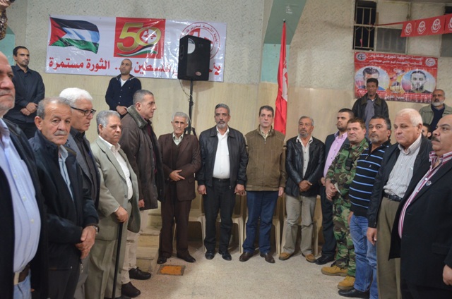 كلمة الجبهة ألقاها عضو لجنتها المركزية العامة هيثم عبده، استهلها بتوجيه التحية لكل الفدائيين، ولكل الشهداء الذين حفظوا وجه الأرض، تضاريسها، تلالها وسهولها كراحة أيديهم، شبرا شبرا وحجرا حجرا. رواد هذه المسيرة المظفرة على مدى خمسين عاما من النضال، خمسين عاما من العطاء والتضحية والالتزام، مشيرا إلى تجديد العهد اليوم للشهداء أولا، ولكل جماهير شعبنا، وقال: عانينا جميعا من سنوات التيه والضياع، وتعرضت قضيتنا للتبديد والتقزيم والتفريط، ألا يحق لنا بعد أكثر من عشرين عاما من التفاوض العبثي، أن يطلب جردة حساب، مراجعة سياسية شاملة؟ هل من المقبول أن نستمر بالمراهنة على خيار أوسلو؟ ألم يدخلنا مسار أوسلو في ضياع قضية اللاجئين؟ ألم يتضاعف الاستيطان ثلاثة أضعاف في الضفة؟ ما هو مصير الأسرى؟ وعددهم بازدياد مستمر. وما هو مصير القدس، والتي تحولت إلى مركز للاستيطان، وقد تضاعف عدد المستوطنين فيها مرات. وفلسطينيو الأراضي الفلسطينية المحتلة عام 48، فإنهم يتعرضون لأوسع حملة حصار وضغط، عبر سن القوانين العنصرية التي تحرمهم من لغتهم، من رفع الأذان، تسلبهم ممتلكاتهم التي كانت تسمى أملاك الغائبين، عدا عن تغيير أسماء الشوارع العربية إلى عبرية، منع إحياء مناسبات وطنية ومنها يوم النكبة.