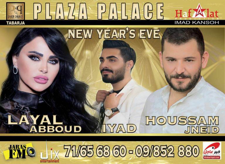 كما يحيي الفنانان معين شريف وأدهم نابلسي حفلاً فنياً بمناسبة رأس السنة الجديدة، في أوتيل الموفنبيك – بيروت، كما ستشارك في الحفل الراقصة إليسار.