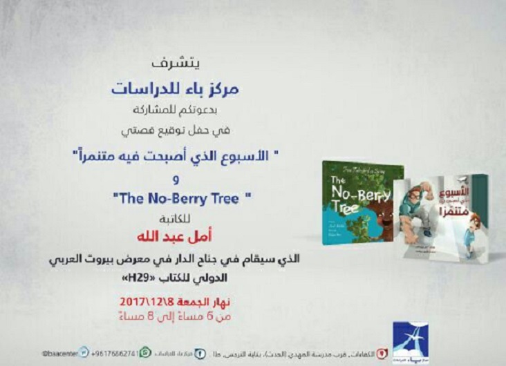 بدعوة من مركز باء للدراسات، يقام من الساعة السادسة الى الثامنة من مساء الجمعة الموافق 8 كانون الأول (ديسمبر) 2017، حفل توقيع كتاب