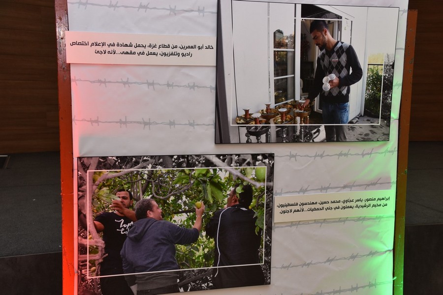 أن الشعب الفلسطيني في لجوئه يتسلح بالعلم ويحصد ألنجاحات ولديه ألكفاءات وألمهارات ، لكن للأسف لا يستطيع أن يمارسها في مجالاتها نتيجة منعه من ممارسة ألمهنة وحق العمل .