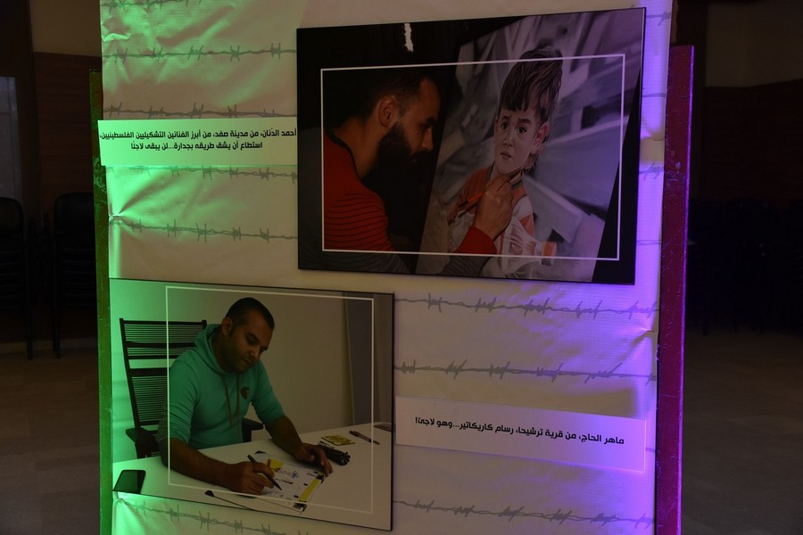 وقال صاحب المعرض الزميل العلي : ان فكرة المعرض هي صور لأشخاص مبدعين من الشتات وتم تقسيم الصور الى مجموعتين مجموعة تضم مبدعين من الكتاب والشعراء والملحنين والصحافيين الذين أبدعوا في مجالاتهم على الرغم من انهم لاجئين وأبناء مخيمات والمجموعة الثانية تضم صور لأشخاص حائزين على شهادات في اختصاصات متعددة الا انهم لا يعملون بمجالاتهم وتحدوا اللجوء بالعمل في مجالات مختلفة وأضاف العلي أردت إيصال رسالة وهو ان الشعب الفلسطيني مبدع على الرغم من اللجوء لان إيمانه وعزيمته وارادته قوية بالعودة الى بلده فلسطين وعاصمتها القدس ..