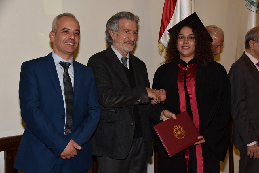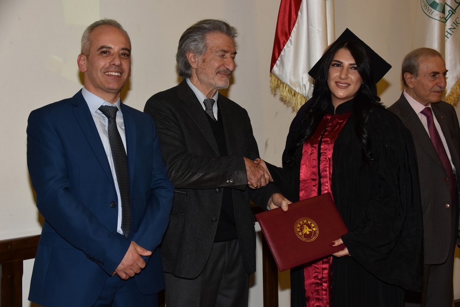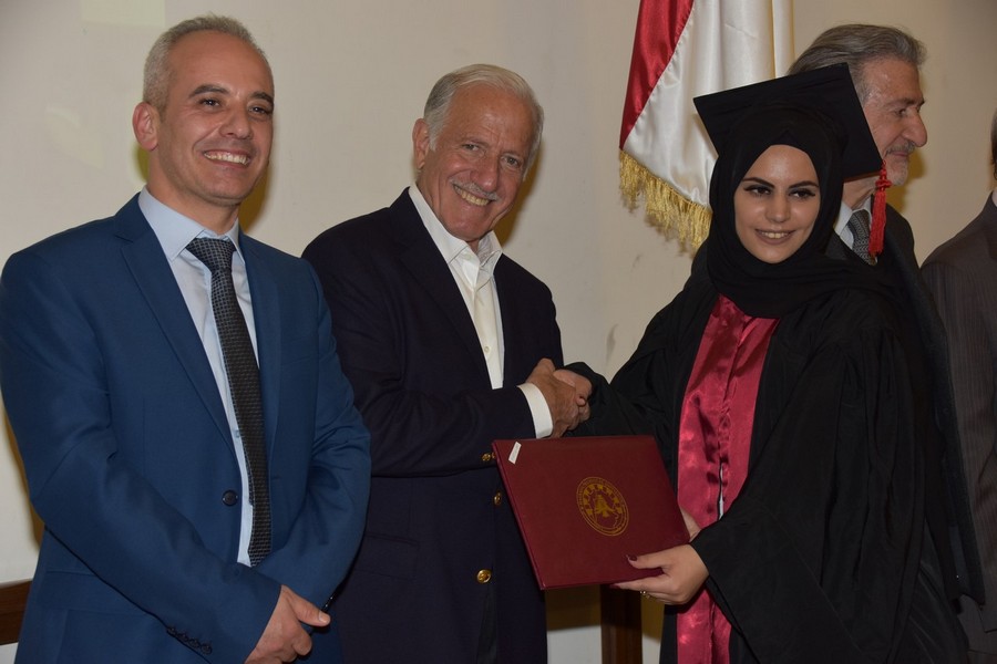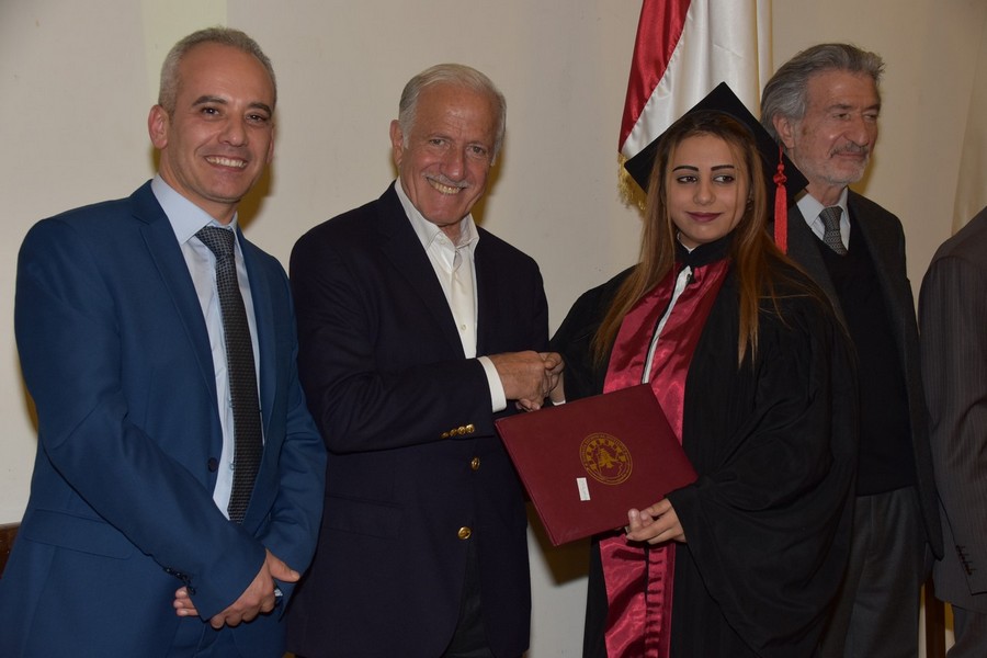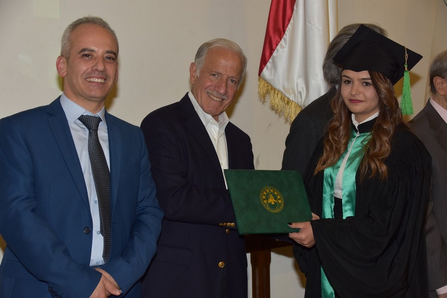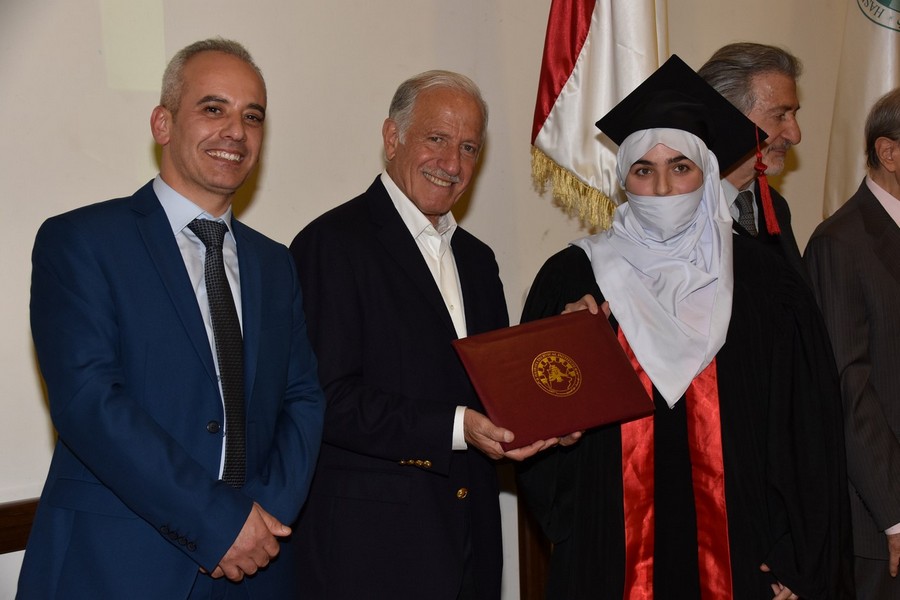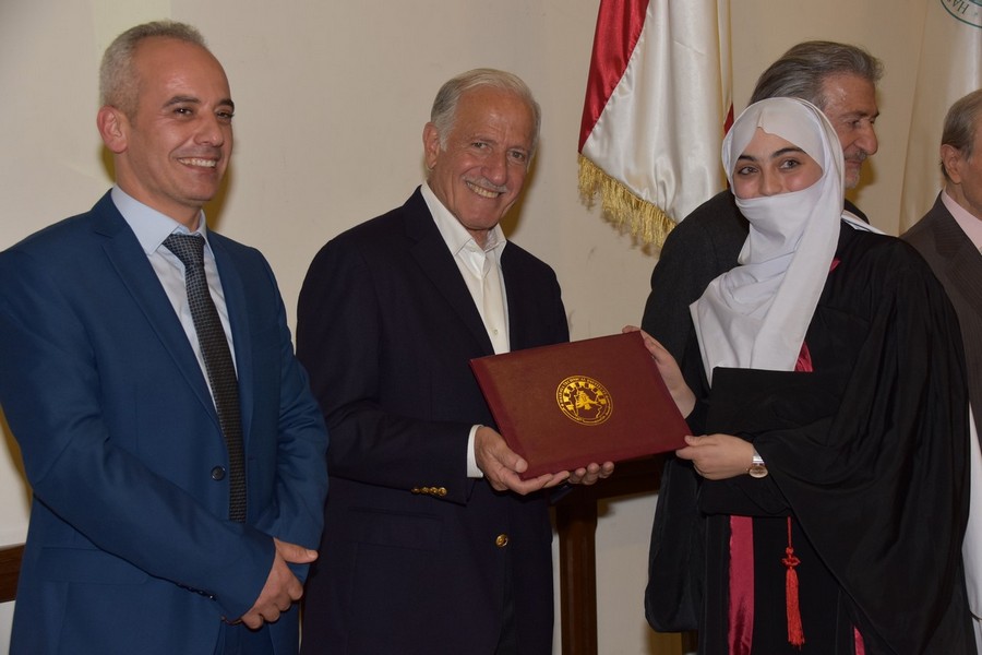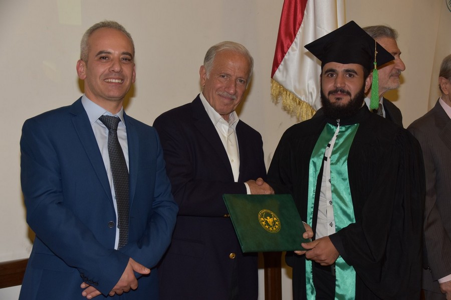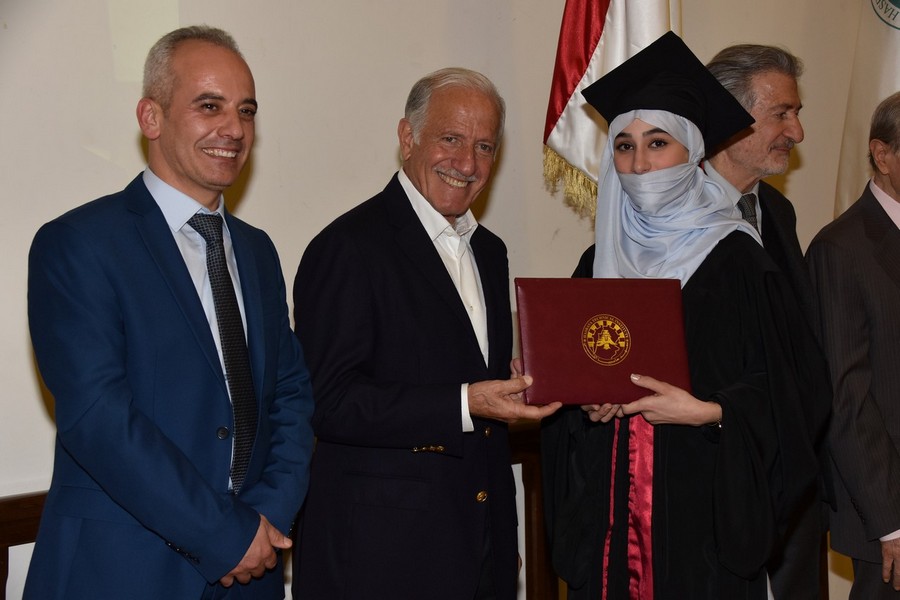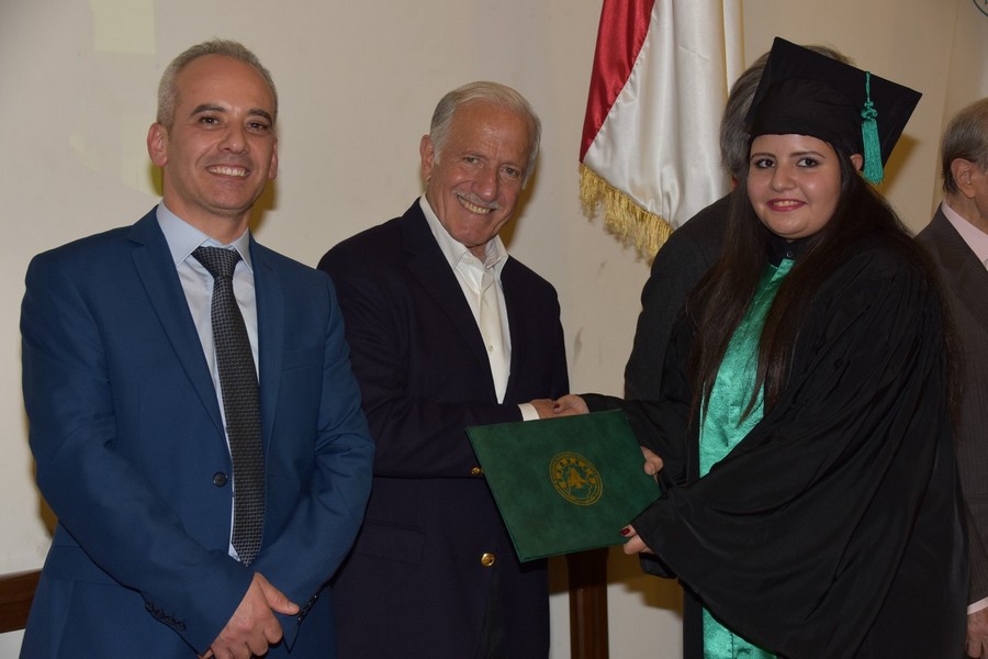 واختتم الحفل بتسليم دروع تكريمية للمساهمين في مساعدات للمعهد وتلاها توزيع الشهادات على الطلاب المتفوقين والناجحين .