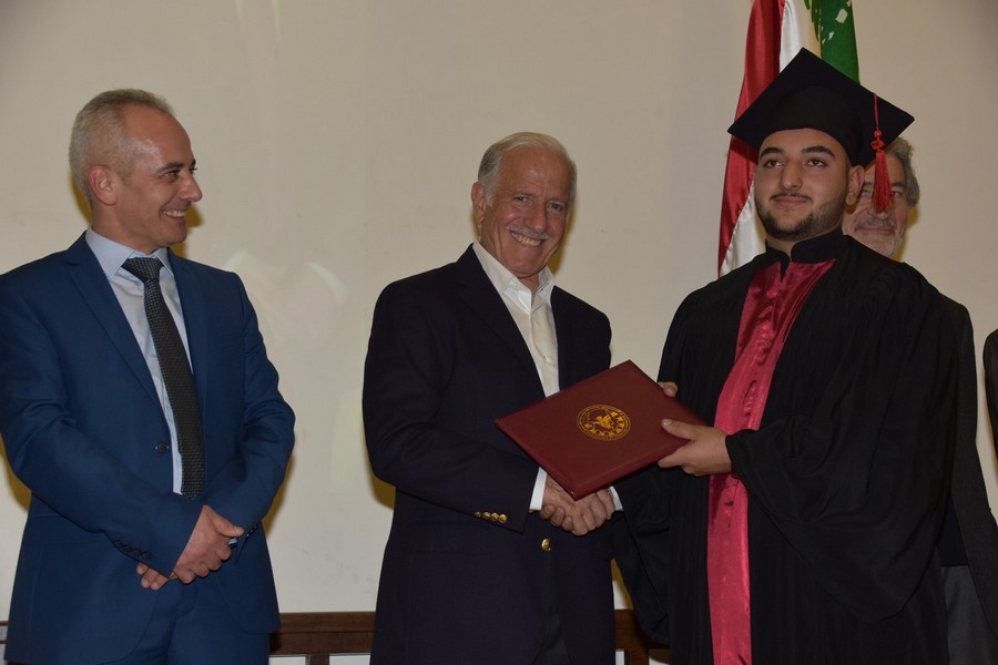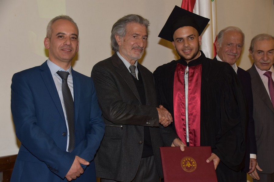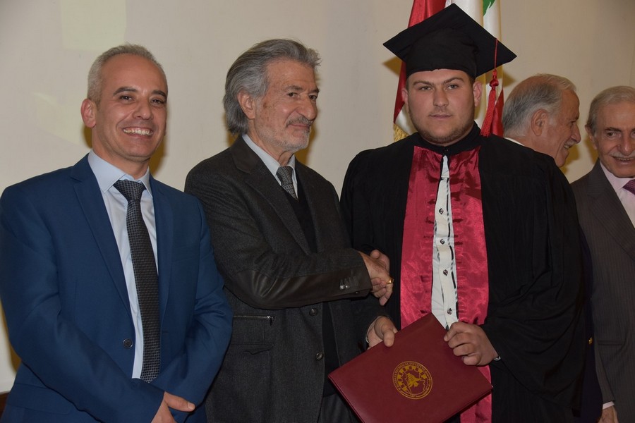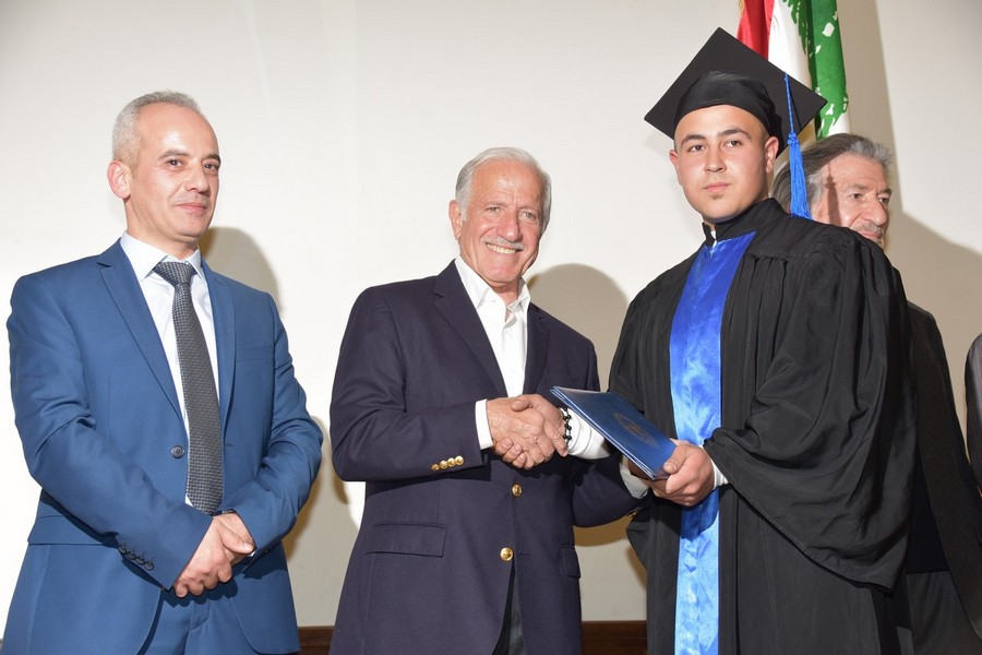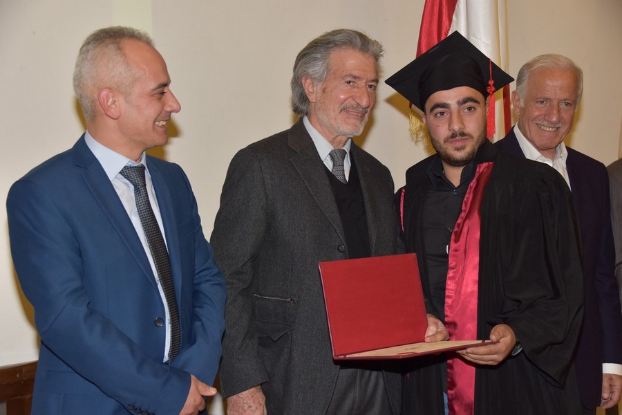 تلاها كلمة مدير المعهد الاستاذ رفيق نجاد أبرز ما جاء فيها : ان اجمل الايام في معهدنا هو يوم التخرج ويوم تكريم من يستحقون من طلاب جهدوا واجتهدوا ليقطفوا ثمار جهدهم نجاحاً ، وعندما يتعلق الامر بالتعليم المهني والتقني يعني الامر كمّ كبير من التدريب ومن تأمين المختبرات والتجهيزات المواكبة للتطور واصعب ما يعاني منه التعليم المهني في لبنان هو الشح في المعدات والتجهيزات ، فكانت المكرّمة المقدمة من الاستاذ زياد الخليل لمختبر الفندقية ومن معالي النائب انور الخليل للمختبر الفني ولمختبر العناية التمريضية الدور الاهم في استحداث فروع جديدة وتأمين تدريب كاف لطلابنا ، واليوم يتكرم علينا الشيخ فيصل الخليل ليزيد قدرتنا على السير قدماً وتحقيق التميز وفتح الفرص أمام طلابنا ، فقد زادت القدرة الاستيعابية لاختصاص الفندقية ومكنتنا من استحداث اختصاص الكهرباء لمستوى الامتياز الفني ( الجامعي ) وسوف تغطي المكرمة قسم ميكانيك السيارات .كما يتم العمل مع مؤسسة الخليل الاجتماعية لاطلاق مشروع دورات تقوية في اللغة الانكليزية لكل طلاب السنوات الاولى في المعهد .وختاماً أود ان ابشركم بأننا حصدنا هذا العام نتائج مبهرة في جميع الاختصاصات على صعيد المحافظة والوطن .