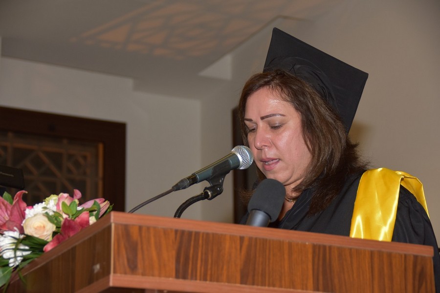 بداية النشيد الوطني اللبناني والوقوف دقيقة صمت على روح الدكتور المدرّس عدنان ابو دهن ، تلاها كلمة الهيئة التعليمية القتها داليا سليقا ابو دهن توجهت فيها الى الهيئة التعليمية والى الطلاب مؤكدة ان الامانة التي حملناها ووعدنا بتحقيقها تتحقق اليوم بتخرجكم وانطلاقكم في مسيرة الحياة العملية ، فدرب الحياة لن يكون سهلاً عليكم فالمسؤولية ستزداد يوماً بعد يوم فتحلو بالصبر والارادة فكما نجحتم في معهد حاصبيا ابواب النجاح مفتوحة لكم في جامعاتكم وحياتكم ، مبارك نجاحكم وتذكروا دوماً ان الانسان في الحياة لايحصد الا ما زرعه .