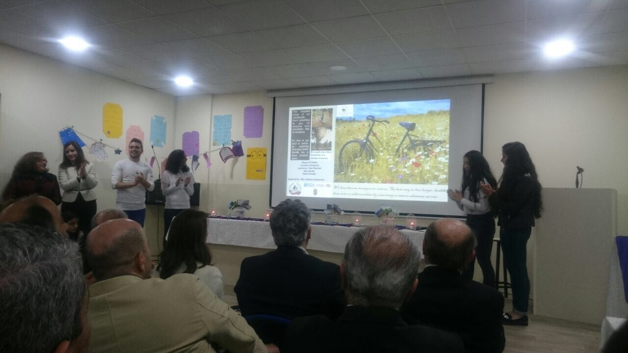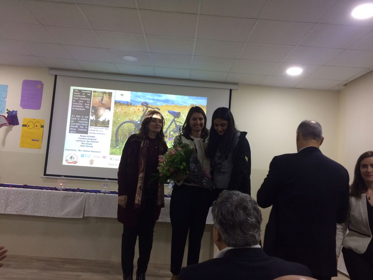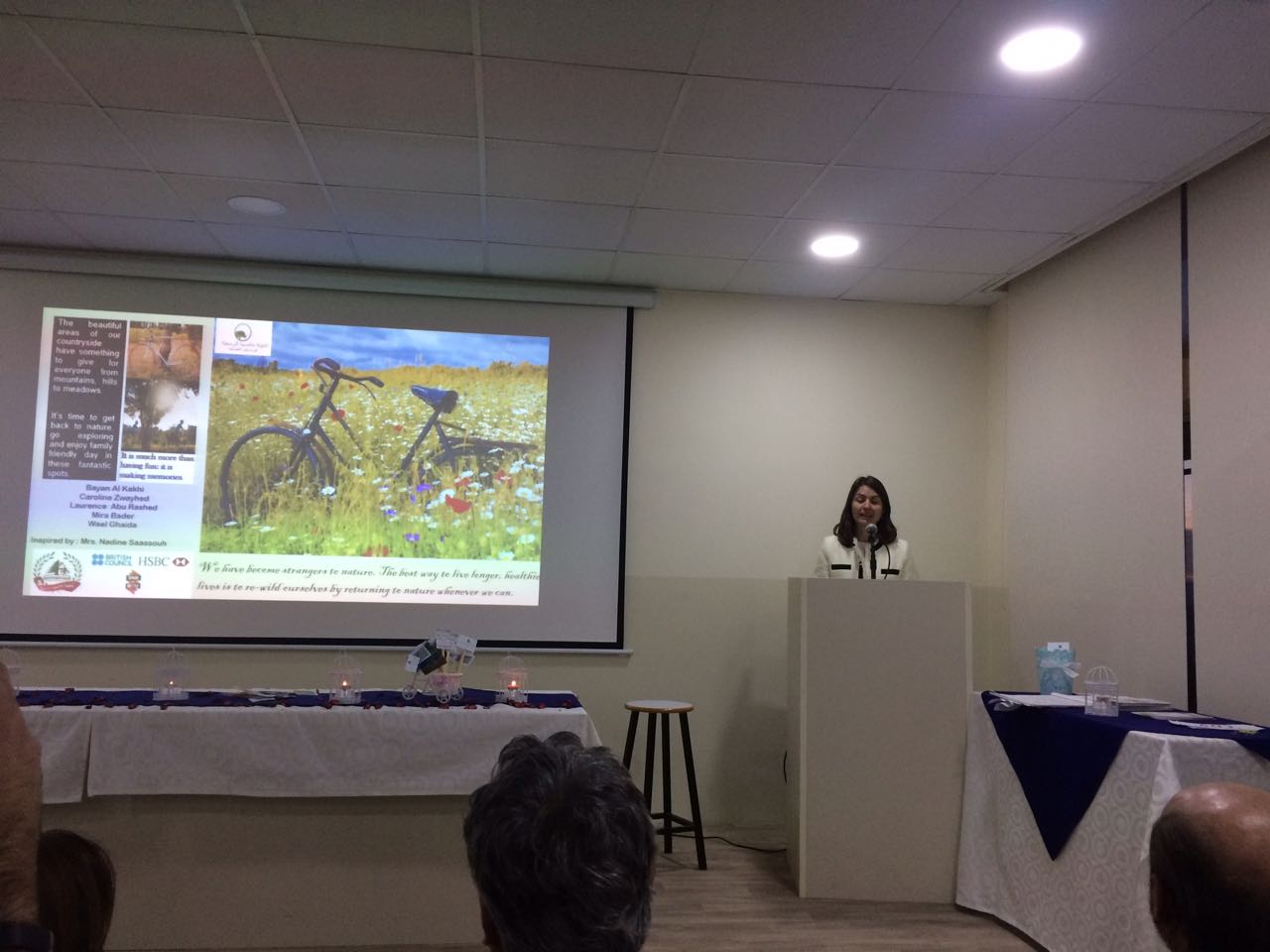 ثم افتتح الاحتفال بالنشيد الوطني اللبناني وكلمة ترحيبية من الاستاذة نادين سعسوع ، تلاها كلمة لمديرة المدرسة غلادس ابو نقول رحبت فيها بالضيوف مقدرة لمعالي النائب الخليل أهتمامه بحاصبيا ومنطقتها وتخصيص المؤسسات العلمية بجهده وأهتمامه وقدمت نبذة عن الثانوية ونجاحاتها ، بعدها قدمت مجموعة من الطلاب نشاطاً موثقاً بفيلم قصير باللغة الانكليزية من برنامج " تقدم " حول مشروع رياضة الدراجات في حاصبيا وطبيعتها وأهميتها للصحة