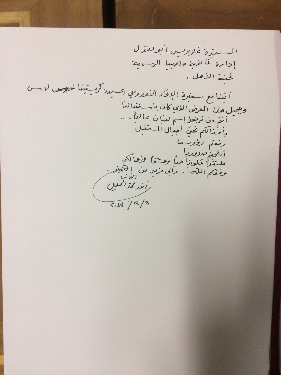 من ضمن جولتها في حاصبيا زارت سفيرة الاتحاد الاوروبي السيدة كريستينا لاسن سفيرة الاتحاد الاوروبي و رئيسة بعثة الاتحاد الاوروبي برفقة النائب أنور الخليل وعقيلته ووفد مرافق ثانوية حاصبيا الرسمية حيث أعد لها أستقبال من الهيئة التعليمية ومجلس الاهل والطلاب ، بدايته دبكة لبنانية فولوكلورية لفرقة الثانوية ،