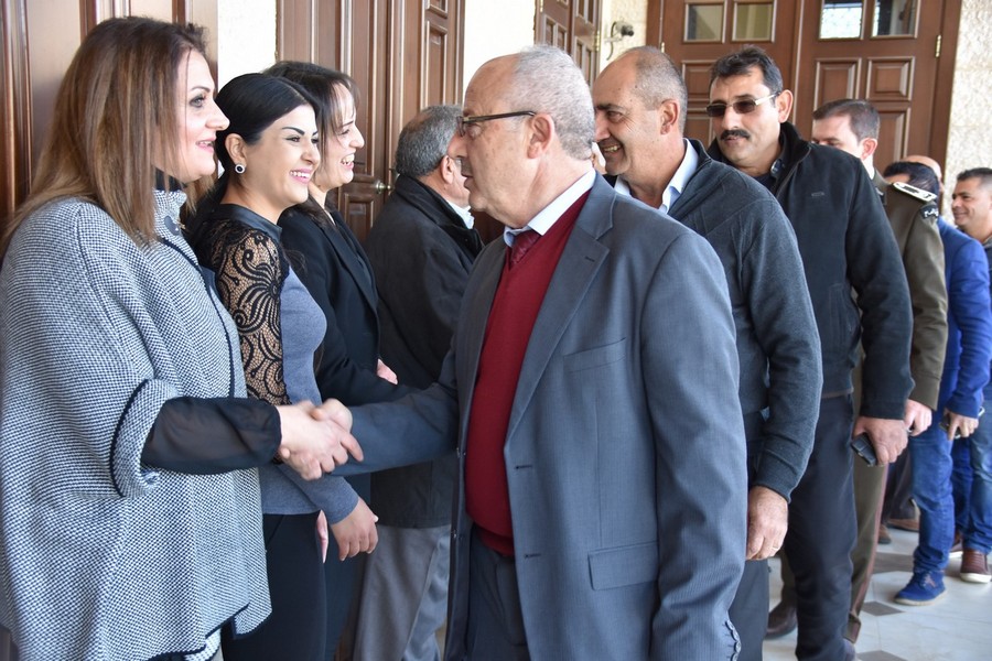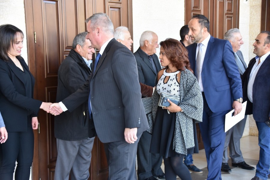 و ختاماً قدم النائب الخليل للسفيرة لاسن درعاً تذكارياً مصنوعاً من جذع شجرة الزيتون المعمرة .كما و قدمت سيدات المحبة لدى مكتب النائب الخليل سلة من المونة البلدية.