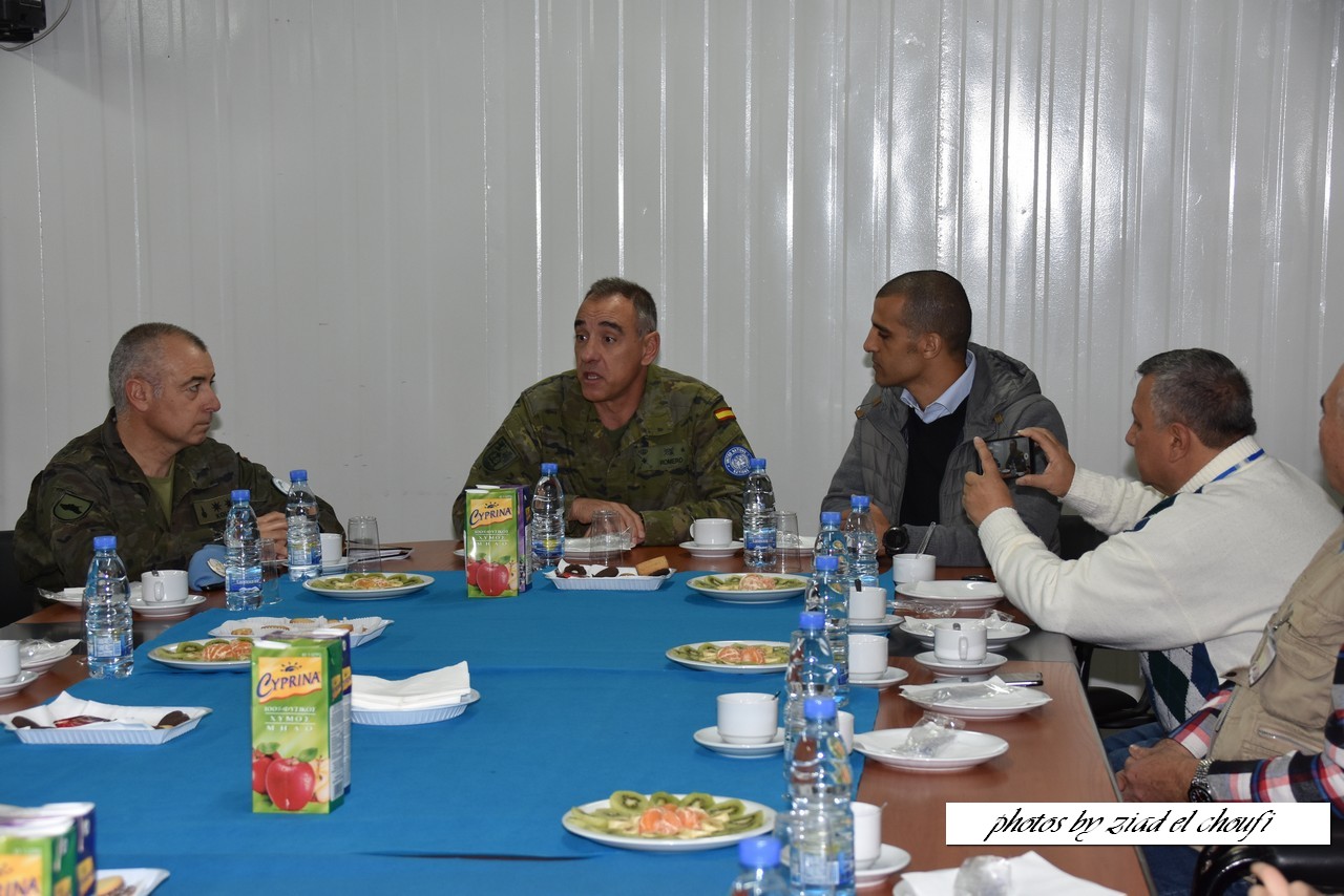 لبى أعلاميو حاصبيا ومرجعيون دعوة قائد القطاع الشرقي في اليونيفيل الجديد أألبريغادير جنرال فرنسيسكو خافيير روميرو ماري الى لقاء عقد في قاعدة ثيرفانتيس في سهل بلاط بحضور مسؤول مكتب الاعلام الاسباني ، تخلله ترحيب من الجنرال روميرو وشكر الاعلاميين على الجهد و العمل الذي يقومون به وعلى تغطية نشاطات اليونيفيل التي تهدف الى حفظ الامن بالتعاون مع الجيش اللبناني في منطقة تواجدهم، ومساعدة السكان المحليين بمشاريع هادفة تحسن الوضع الحياتي والاجتماعي ، بدورهم تكلم بعض الزملاء الصحفيين شاكرين الكتيبة الاسبانية على تعاونها بتسهيل عمل الاعلاميين في المنطقة .