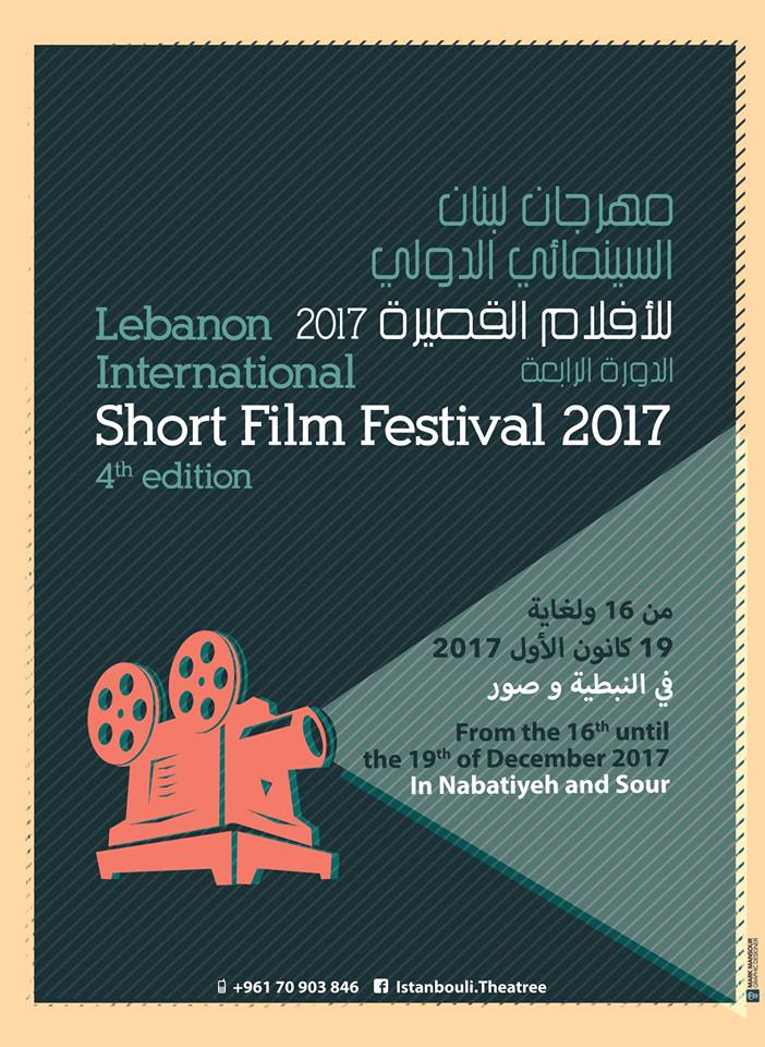 أعلنت إدارة مسرح إسطنبولي وجمعية تيرو للفنون عن إقامة مهرجان لبنان السينمائي الدولي للأفلام القصيرة من 16وحتى 19 كانون الأوّل الجاري في مدينتي صور والنبطية بمشاركة 52 فيلماً ضمن المسابقة الرسمية للمهرجان ،وتشارك أفلام روائية ووثائقية وأفلام تحريك من 27 دولة هي الصين ،إيطاليا، اليابان ،البرازيل ،اليونان، ماليزيا ،مصر، كنداسويسرا،العراق، إيران، الولايات المتحدة الأمريكية، إسبانيا، ألمانيا،الدنمارك،الجزائر، الأردن،هولندا، فرنسا، الهند، تونس، المغرب ،النمسا، هنغاريا، فلسطين، لبنان .