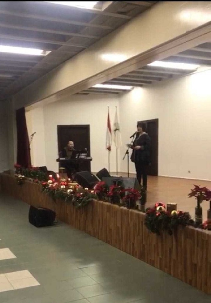 أحيت الفنّانة أميمة الخليل وزوجها الموسيقي هاني سبليني الذي رافقها على البيانو أمسية ميلادية على مسرح مدرسة "راهبات الناصرة" في كفرزينا - زغرتا بدعوة من إدارتها.