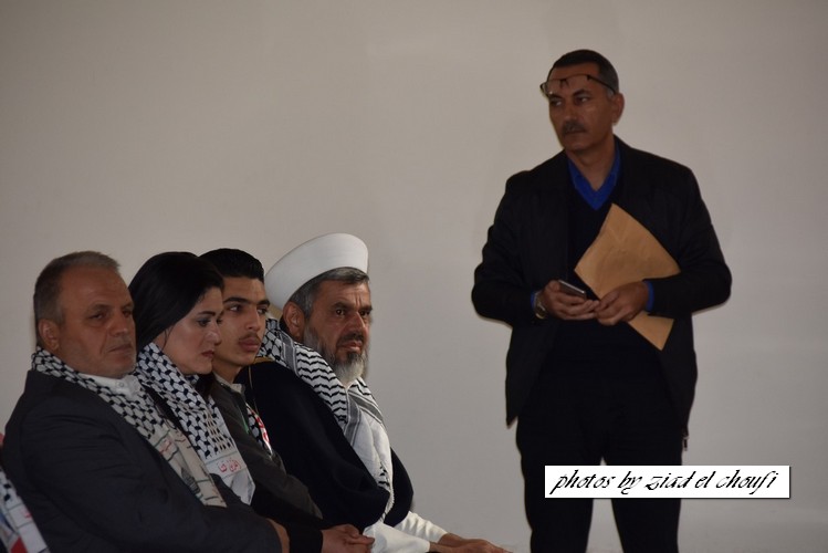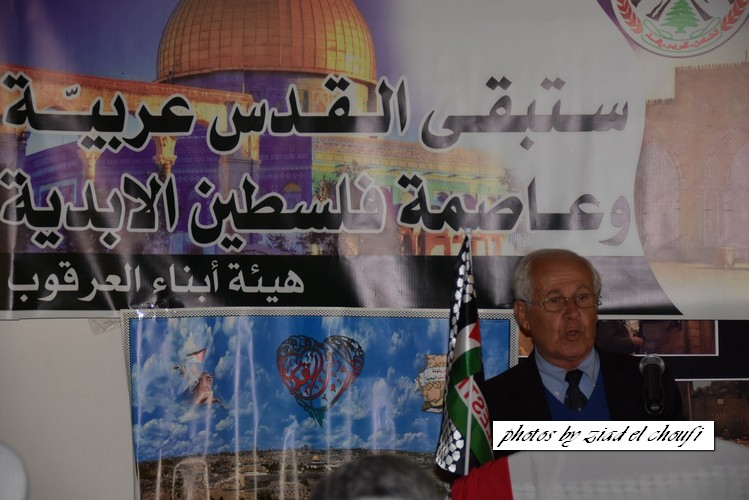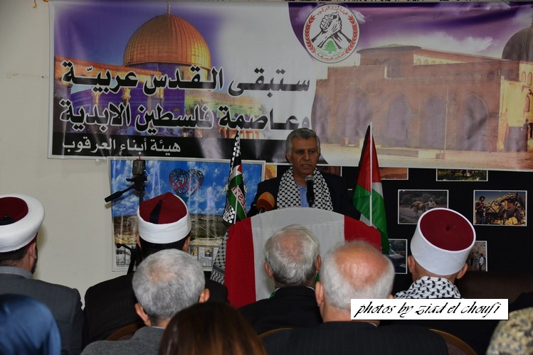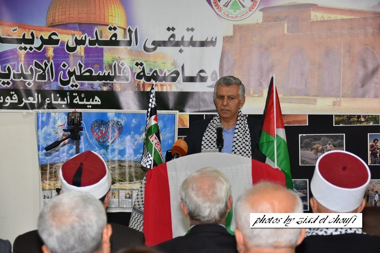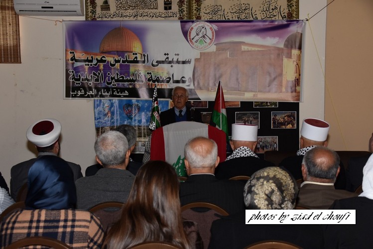 ووجه تحية إجلال واكبار لابطال الانتفاضة في فلسطين ، وندعو قادة الفصائل الفلسطينية الى توحيد الصفوف ووضع استراتيجية موحدة لقيادة الانتفاضة ، ثم تحدث كل من رئيس اتحاد بلديات العرقوب رئيس بلدية شبعا الحاج محمد صعب ، رئيس بلدية كفرشوبا الدكتور قاسم القادري ، رئيس دائرة الاوقاف في مرجعيون وحاصبيا الشيخ جهاد حمد ، الكاتب والمفكر الشيخ غالب سليقا ، مختار الهبارية محمد زكي شبلي ، ومختارة راشيا الفخار السيدة سوزان متري ومختار حاصبيا الشيخ امين زويهد . واجمعت الكلمات على رفض قرار ترامب ودعم انتفاضة الشعب الفلسطيني والتأكيد على عروبة القدس وفلسطين .