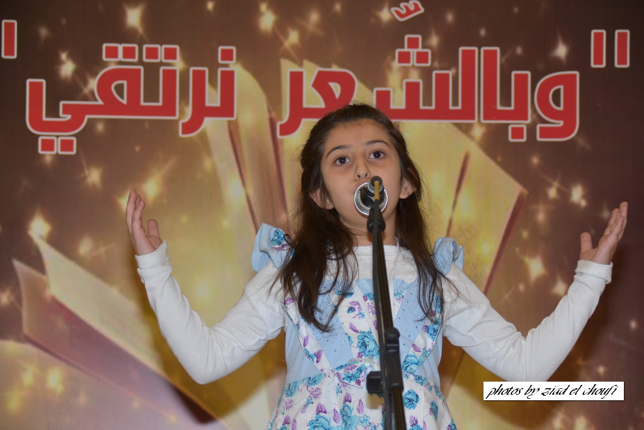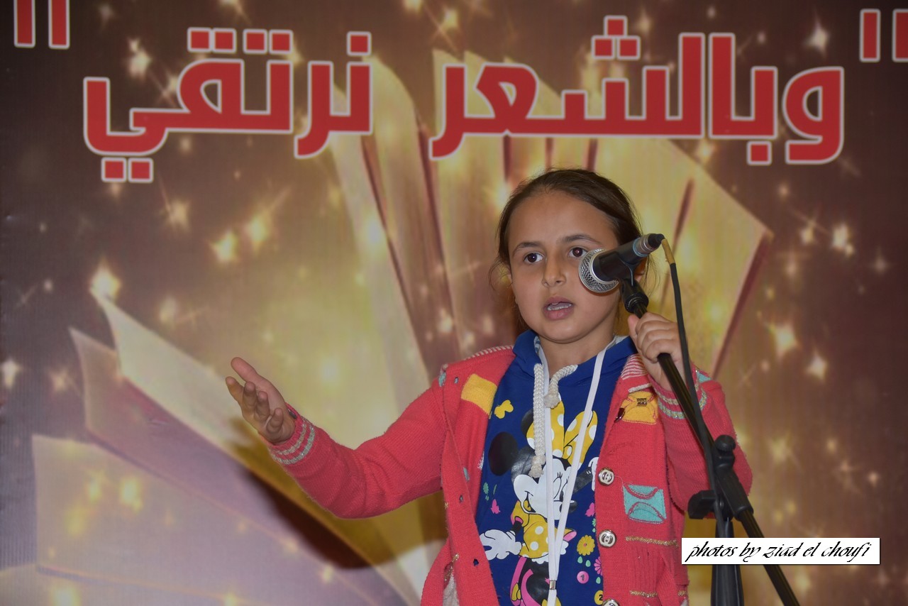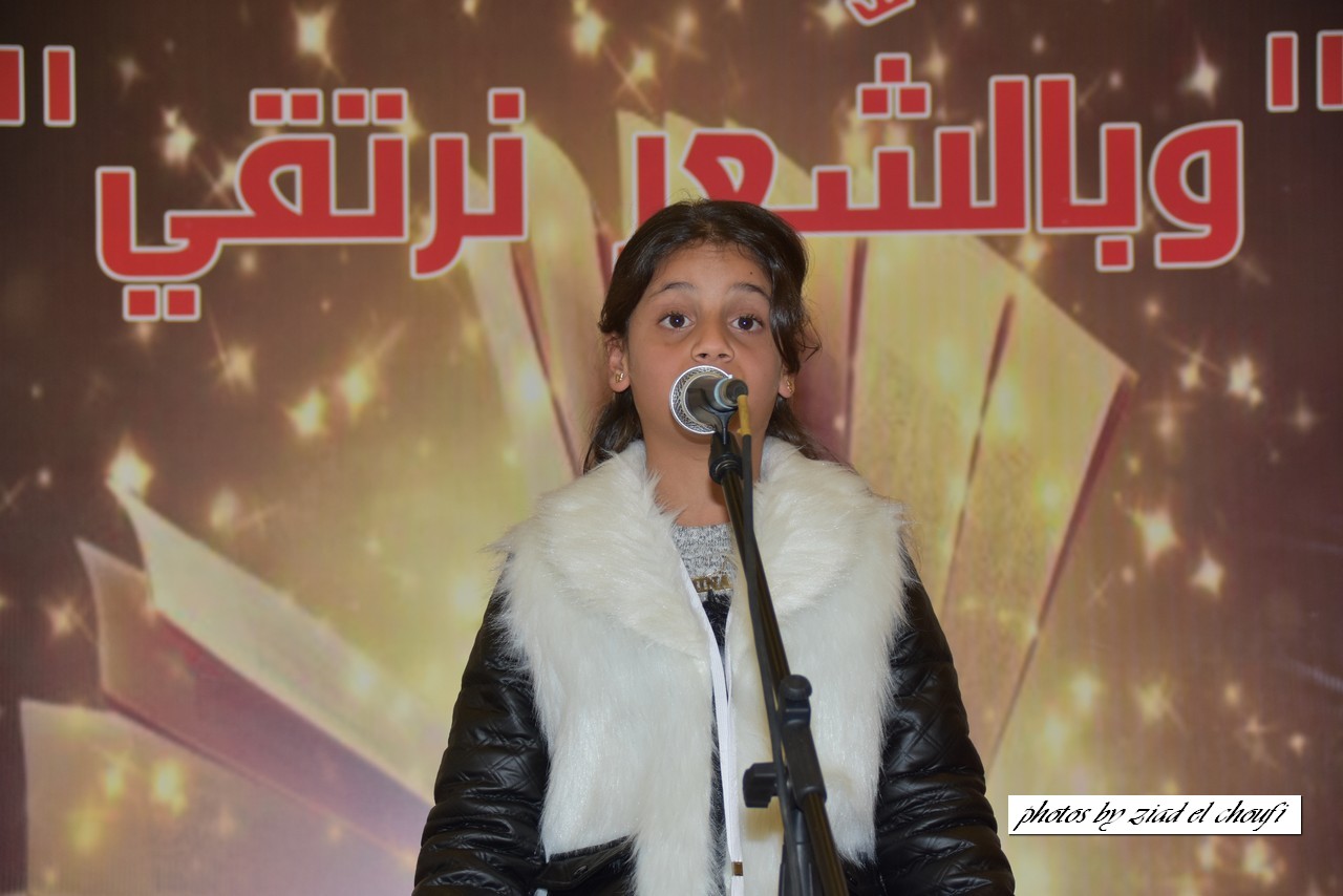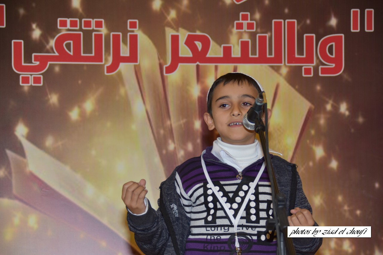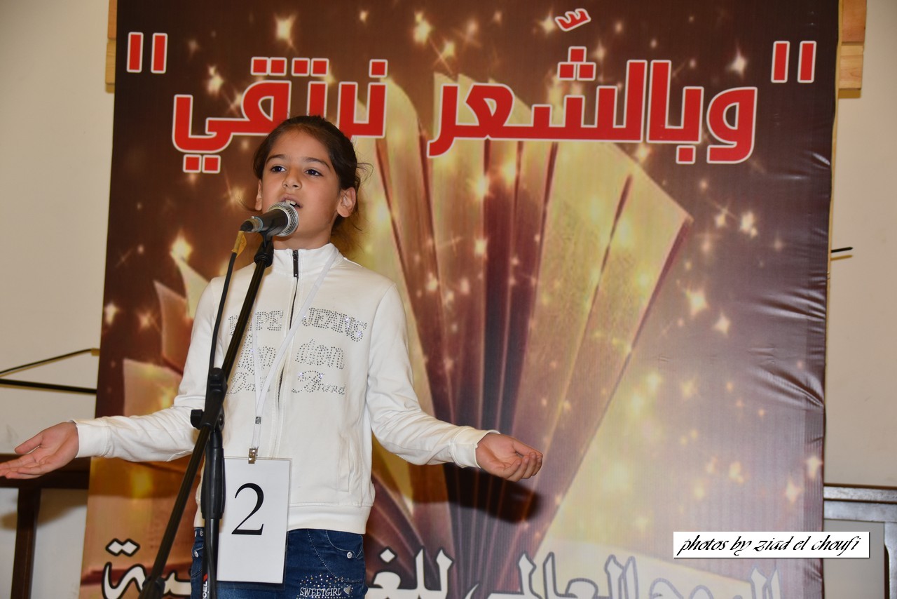 حيث تبارى 16 طالباً من ثمانية مدارس في القاء الشعر بأشراف لجنة تحكيم مؤلفة من دكاترة واساتذة مختصين .
