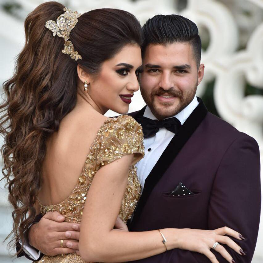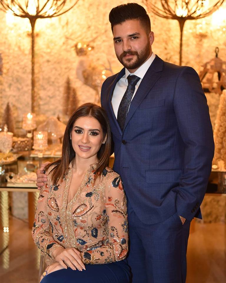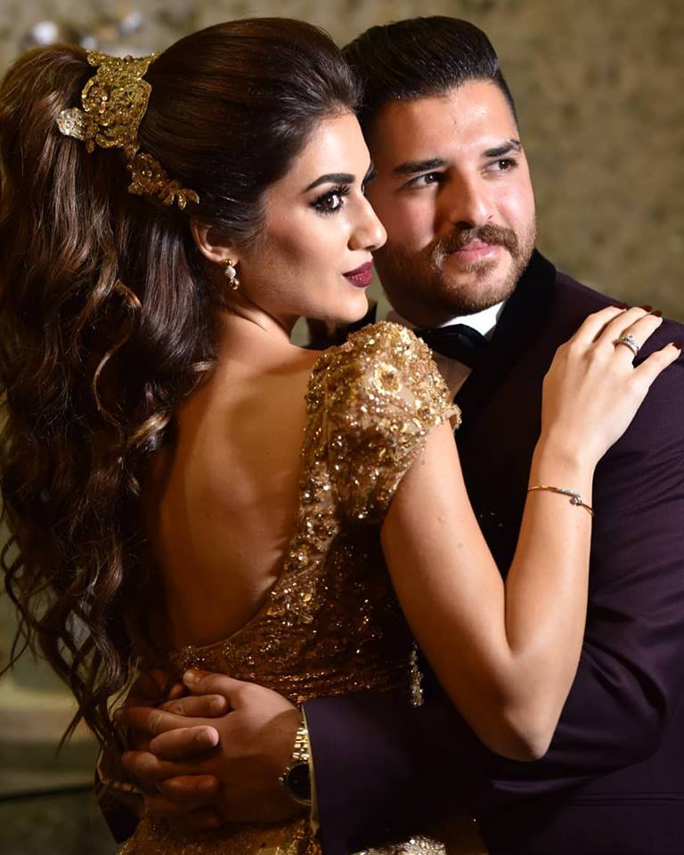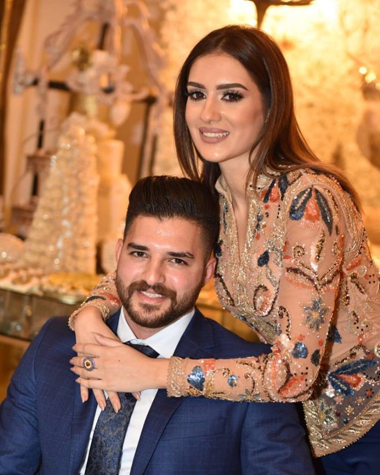 العروسين الشابين الملازم أول عامر علي خشيش ومصممة الازياء الحسناء آية حسين صادق