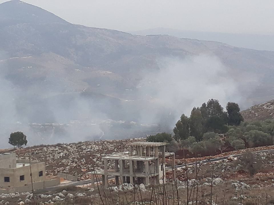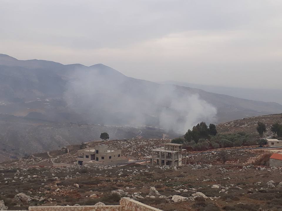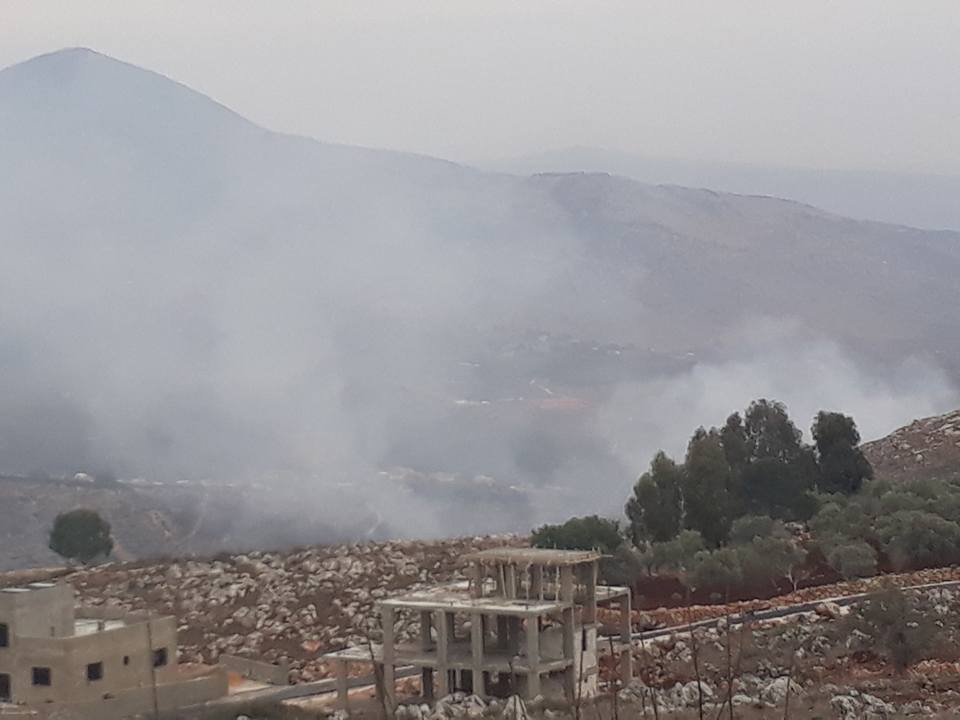 هذه الصورة التقطت، من راشيا افخّار، في ذات اليوم، حيث بلغ الدخان المنبعث بعض البيوت في بلدة إبل السقي
