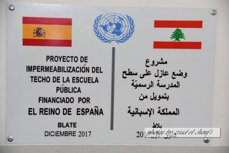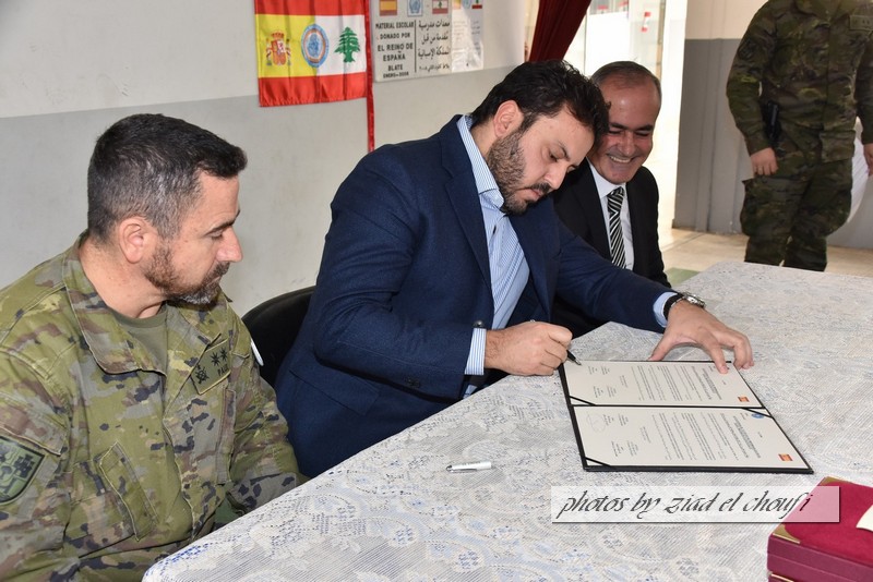 وقعت الكتيبة الاسبانية العاملة في اليونيفيل مع بلدية بلاط اتفاق مشروع تأهيل سطح مدرسة بلاط الرسمية بوضع عازل للنش يقي المدرسة من مشكلة تسرب المياه والرطوبة في الصفوف .