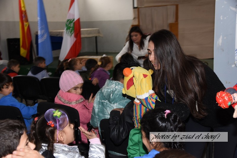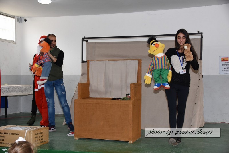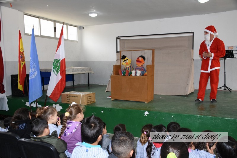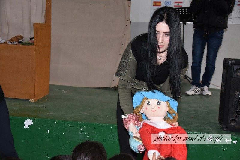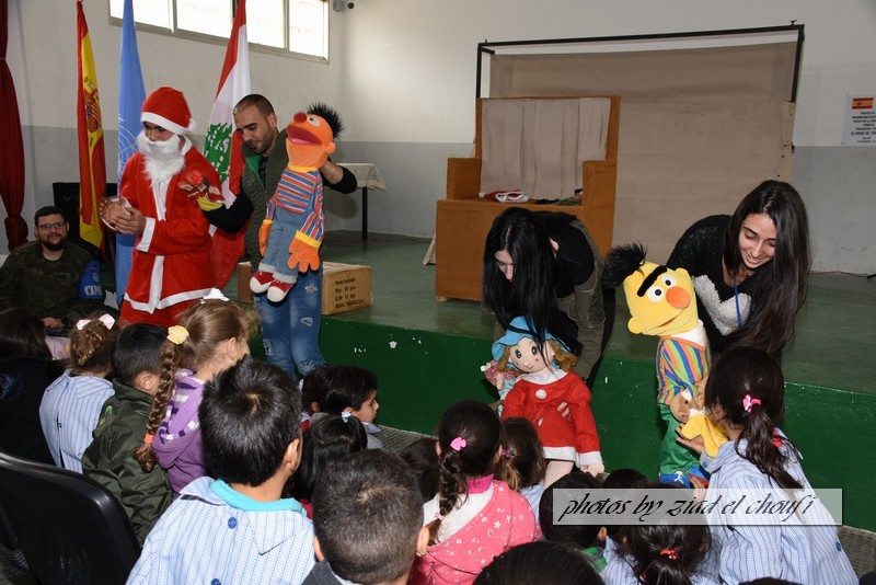واختتم الحفل بمسرح دمى قدمه تجمع الشباب الصاعد في ابل السقي وتقديم هدايا لطلاب المدرسة تقدمة من الكتيبة الاسبانية .