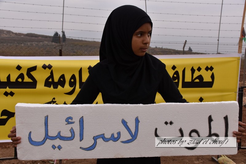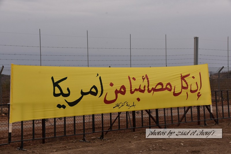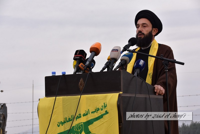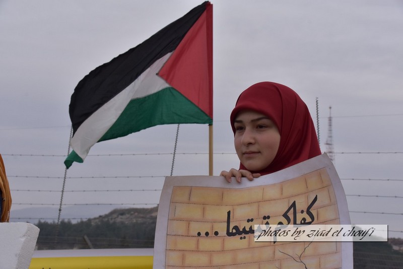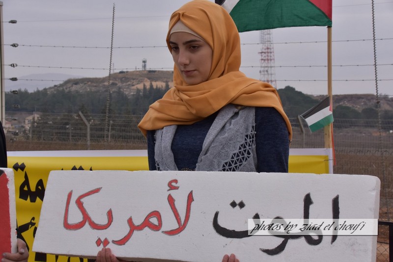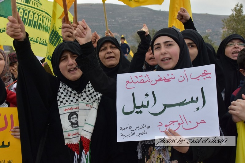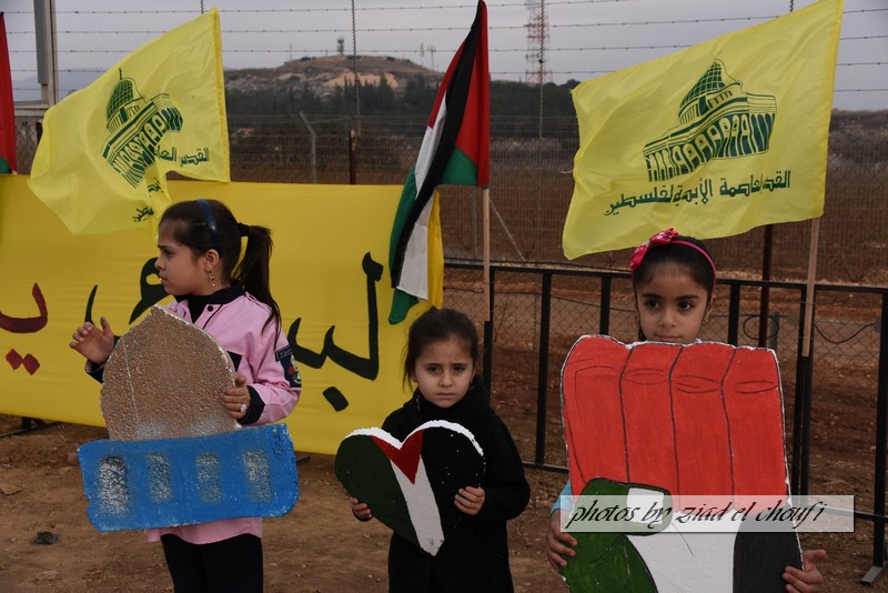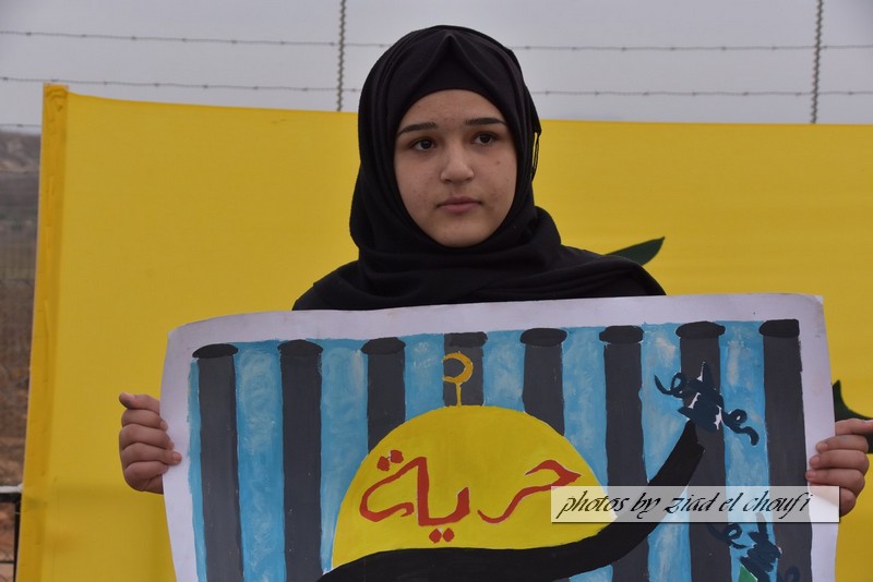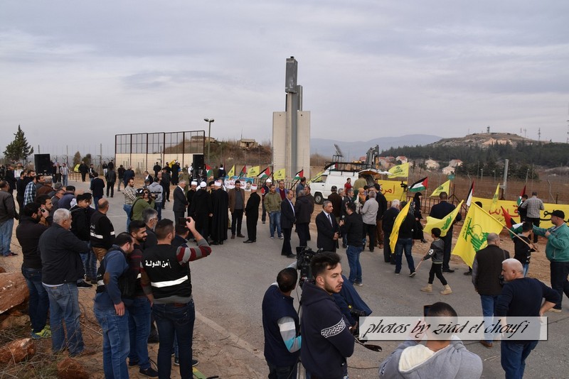 نظم حزب الله، وقفة تضامنية نصرة للاقصى والقدس، في كفركلا عند جدار فاطمة على الحدود بمحاذاة السياج التقني الفاصل بين لبنان والاراضي الفلسطينية المحتلة، بمشاركة فعاليات منطقتي مرجعيون وحاصبيا، احتجاجا على قرار الرئيس الاميركي دونالد ترامب بالاعتراف بالقدس عاصمة لكيان العدو الاسرائيلي، تقدمهم النائبان قاسم هاشم وعلي فياض، رجال دين من مختلف الطوائف، رؤساء بلديات ومخاتير المنطقة، ممثلون عن القوى والاحزاب السياسية، ووفود شعبية من قرى وبلدات المنطقة، والهيئات النسائية في حزب الله، وقد حمل المشاركون اعلام لبنان وفلسطين ورايات حزب الله والقدس ولافتات منددة بالقرار الاميركي كما هتفوا ضد اميركا واسرائيل واحرقوا علميهما.