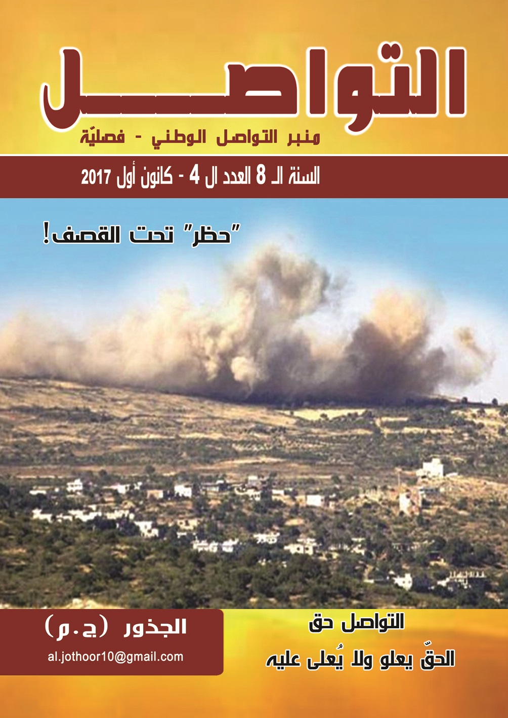 تحت هذه الكلمات عنوان كلمة العدد، صدر هذا الأسبوع عن جمعيّة الجذور لتثبيت وترسيخ الجذور الثقافية للعرب الدروز في البلاد، عدد كانون أول 2017 من مجلّة «التواصل»- منبر التواصل الوطنيّ، وهو العدد الرابع في سنتها الثامنة.