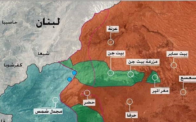 مصادر جنوبية اشارت الى إنه، بعد سيطرته على نقاط عدة محيطة بمقام الشيخ عبد الله في مزرعة بيت جن السورية في ريف دمشق الغربي، يعمل الجيش السوري على الاجهاز على الجماعات الارهابية في المنطقة التي تشرف على بلدة شبعا اللبنانية ومنطقتي حاصبيا والعرقوب، متخوفة من ان يؤدي حسم الوضع الميداني في البلدات السورية المشرفة على شبعا، الى دخول مجموعات من النازحين من بينها مسلحين الى الاراضي اللبنانية في تلال شبعا المتصلة بالاراضي السورية. علما ان جماعات المعارضة السورية لا تزال تسيطر على نحو 5 قرى هي: بيت جن ومزرعتها، جباتة الخشب، مغر المير، تل مروان، وتل المير، إضافة الى أجزاء من بلدات حظروان وحضر، حيث ينتشر في الاخيرة اللواء التسعون السوري، الذي يخطط لان تكون البلدة منطلقا لاستعادة البلدات المحيطة، ما يُقفل الممر الذي تسعى من خلاله الجماعات الارهابية للتسلل الى لبنان.