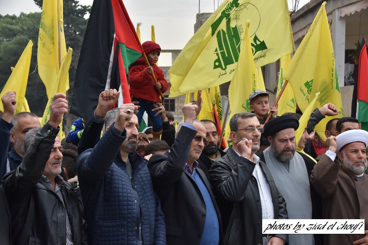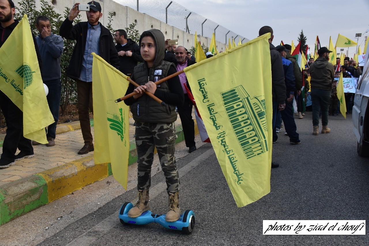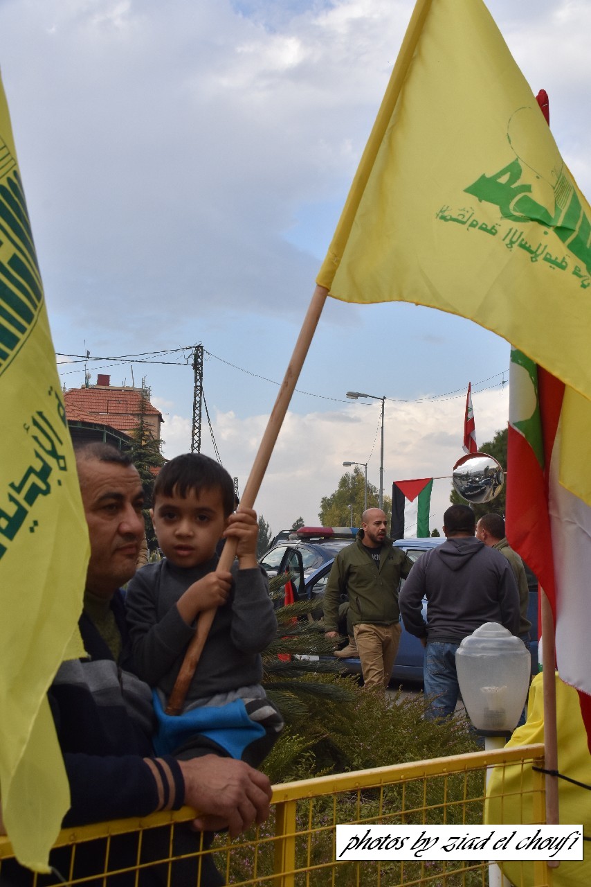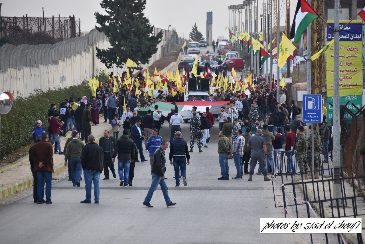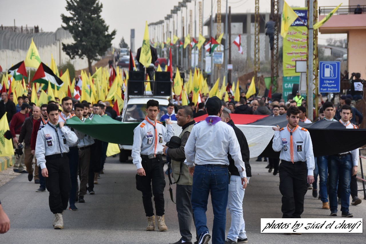 اقام حزب الله تظاهرة عند الحدود بمحاذاة جدار فاطمة نصرة للقدس الشريف وفلسطين ، حملت عنوان القدس عاصمة أبدية لفلسطين ، شارك فيها الشيخ حسن عز الدين مسؤول العلاقات الخارجية في حزب الله ، رئيس اتحاد بلديات جبل عامل علي الزين وعدد من رؤساء بلديات ومخاتير الاتحاد، ورجال دين وأئمة وفاعليات وممثلي القوى والاحزاب السياسية في المنطقة وعوائل الشهدا، وحشد من المواطنين القادمين من مختلف قرى جبل عامل حاملين الاعلام اللبنانية والفلسطينية ورايات حزب الله وعلم كبير لفلسطين ، وسط إجراءات امنية مشددة للجيش وقوى الامن في مكان الاحتفال حفاظا على السلامة العامة ومراقبة من قوات اليونيفيل وفريق مراقبي الهدنة الدوليين، ومراقبة من داخل الحدود لجنود العدو بواسطة الكاميرات المنتشرة على طول الجدار، الذي سبق أن اطلق (العدو) إرهابا قنبلتين صوتيتين باتجاه عدد من الشبان قاموا بالاقتراب من السياج التقني .قبل بدء التظاهرة.