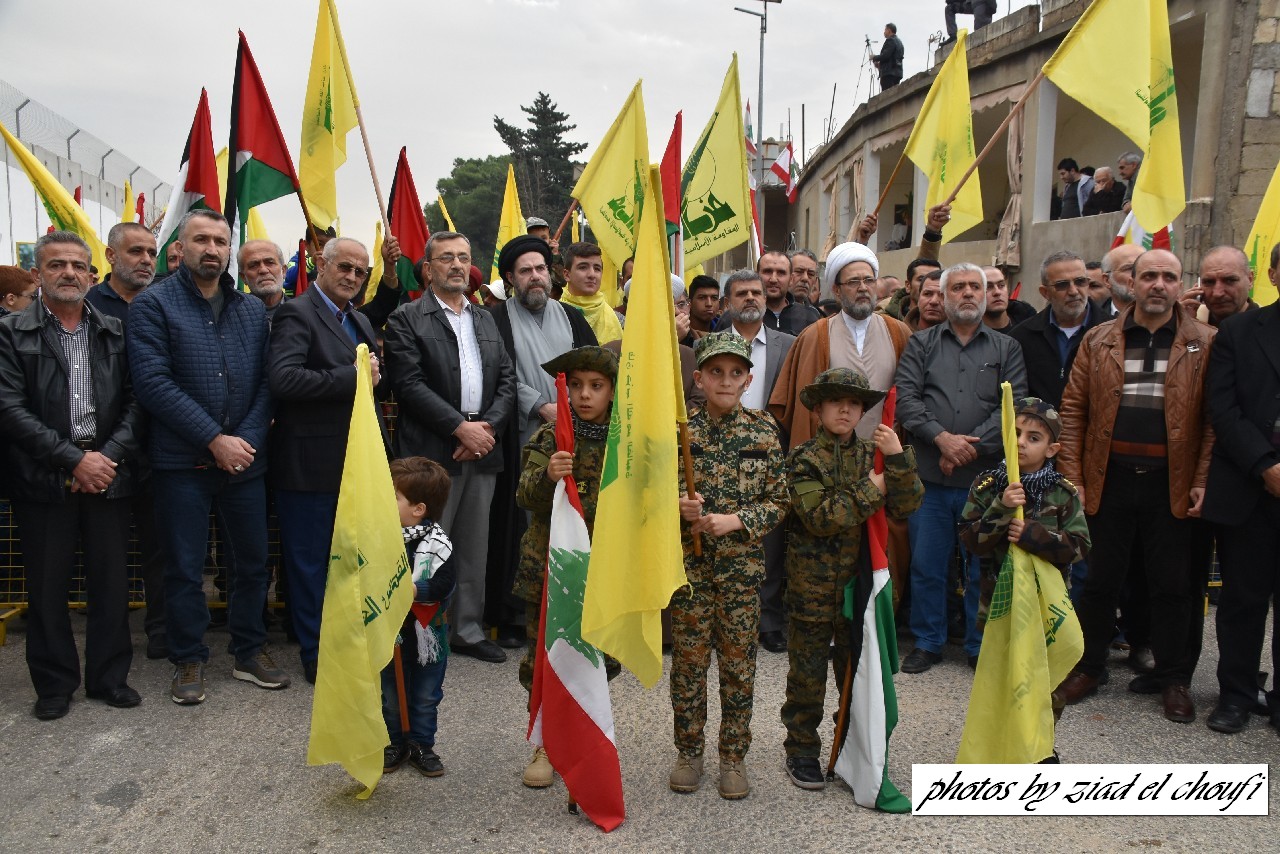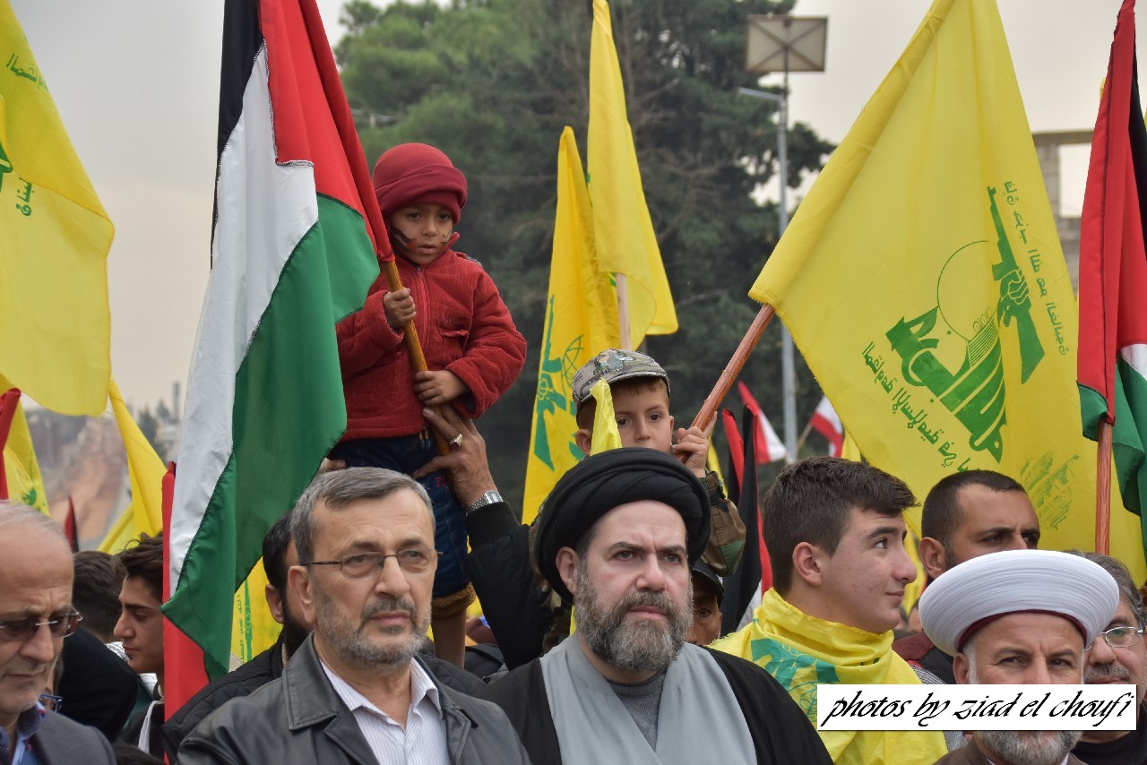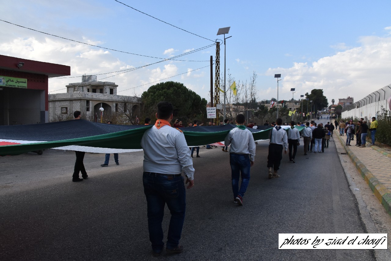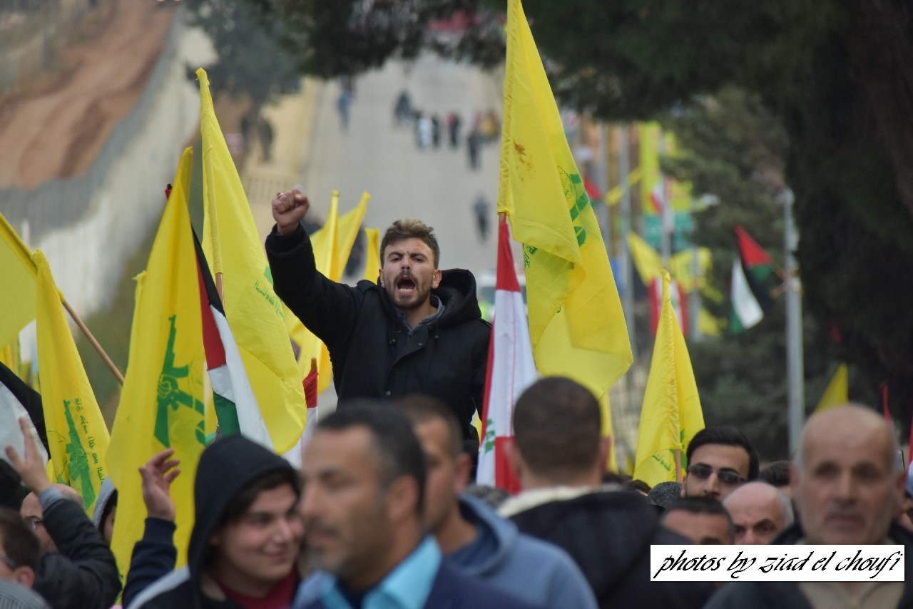 اقام حزب الله تظاهرة عند الحدود بمحاذاة جدار فاطمة نصرة للقدس الشريف وفلسطين ، حملت عنوان القدس عاصمة أبدية لفلسطين ، شارك فيها الشيخ حسن عز الدين مسؤول العلاقات الخارجية في حزب الله ، رئيس اتحاد بلديات جبل عامل علي الزين وعدد من رؤساء بلديات ومخاتير الاتحاد، ورجال دين وأئمة وفاعليات وممثلي القوى والاحزاب السياسية في المنطقة وعوائل الشهدا، وحشد من المواطنين القادمين من مختلف قرى جبل عامل حاملين الاعلام اللبنانية والفلسطينية ورايات حزب الله وعلم كبير لفلسطين ، وسط إجراءات امنية مشددة للجيش وقوى الامن في مكان الاحتفال حفاظا على السلامة العامة ومراقبة من قوات اليونيفيل وفريق مراقبي الهدنة الدوليين، ومراقبة من داخل الحدود لجنود العدو بواسطة الكاميرات المنتشرة على طول الجدار، الذي سبق أن اطلق (العدو) إرهابا قنبلتين صوتيتين باتجاه عدد من الشبان قاموا بالاقتراب من السياج التقني .قبل بدء التظاهرة.