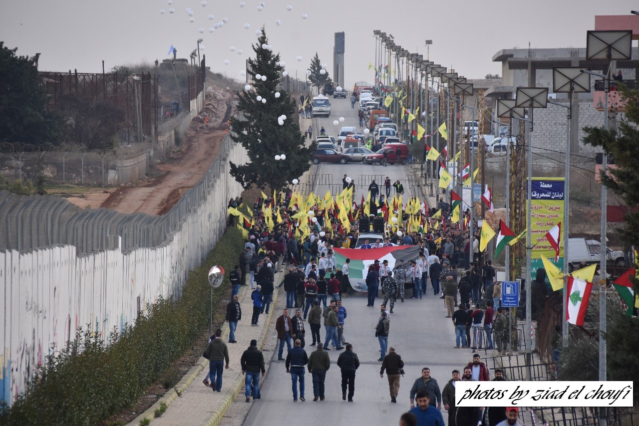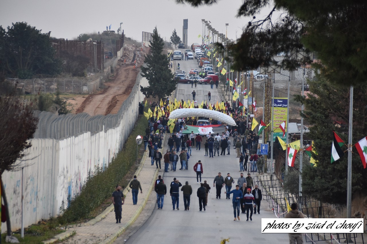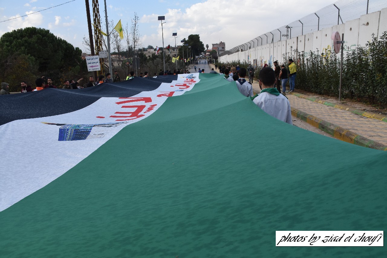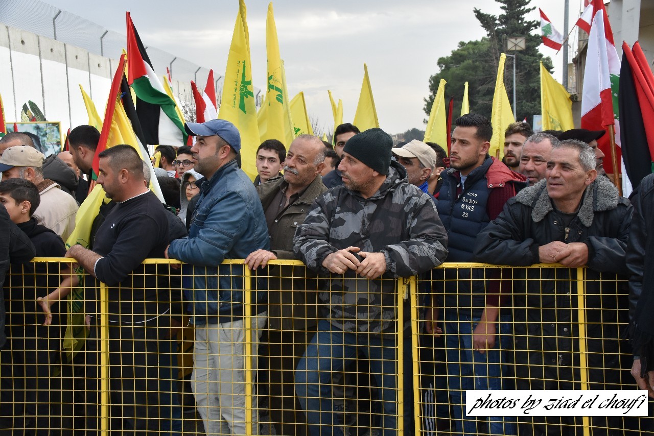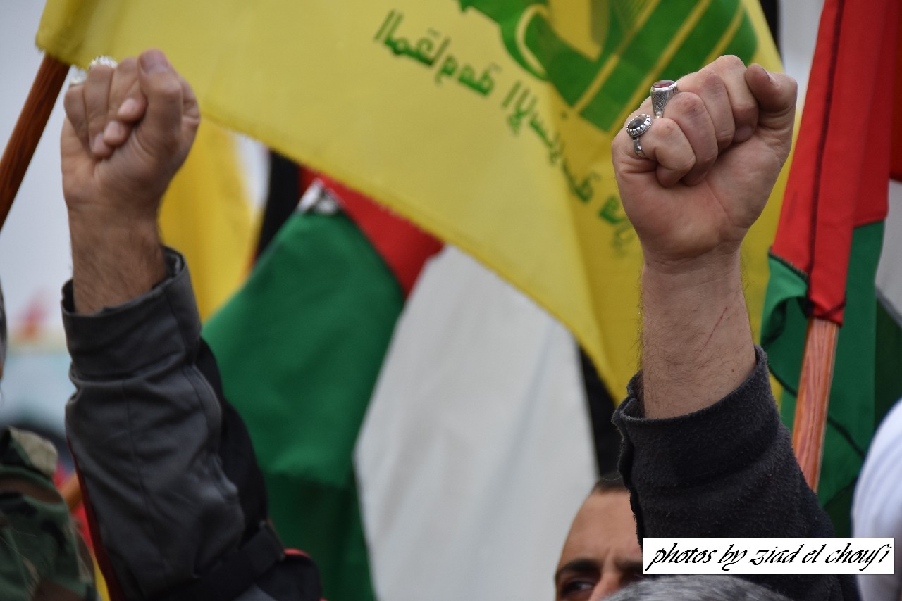اقام حزب الله تظاهرة عند الحدود بمحاذاة جدار فاطمة نصرة للقدس الشريف وفلسطين ، حملت عنوان القدس عاصمة أبدية لفلسطين ، شارك فيها الشيخ حسن عز الدين مسؤول العلاقات الخارجية في حزب الله ، رئيس اتحاد بلديات جبل عامل علي الزين وعدد من رؤساء بلديات ومخاتير الاتحاد، ورجال دين وأئمة وفاعليات وممثلي القوى والاحزاب السياسية في المنطقة وعوائل الشهدا، وحشد من المواطنين القادمين من مختلف قرى جبل عامل حاملين الاعلام اللبنانية والفلسطينية ورايات حزب الله وعلم كبير لفلسطين ، وسط إجراءات امنية مشددة للجيش وقوى الامن في مكان الاحتفال حفاظا على السلامة العامة ومراقبة من قوات اليونيفيل وفريق مراقبي الهدنة الدوليين، ومراقبة من داخل الحدود لجنود العدو بواسطة الكاميرات المنتشرة على طول الجدار، الذي سبق أن اطلق (العدو) إرهابا قنبلتين صوتيتين باتجاه عدد من الشبان قاموا بالاقتراب من السياج التقني .قبل بدء التظاهرة.